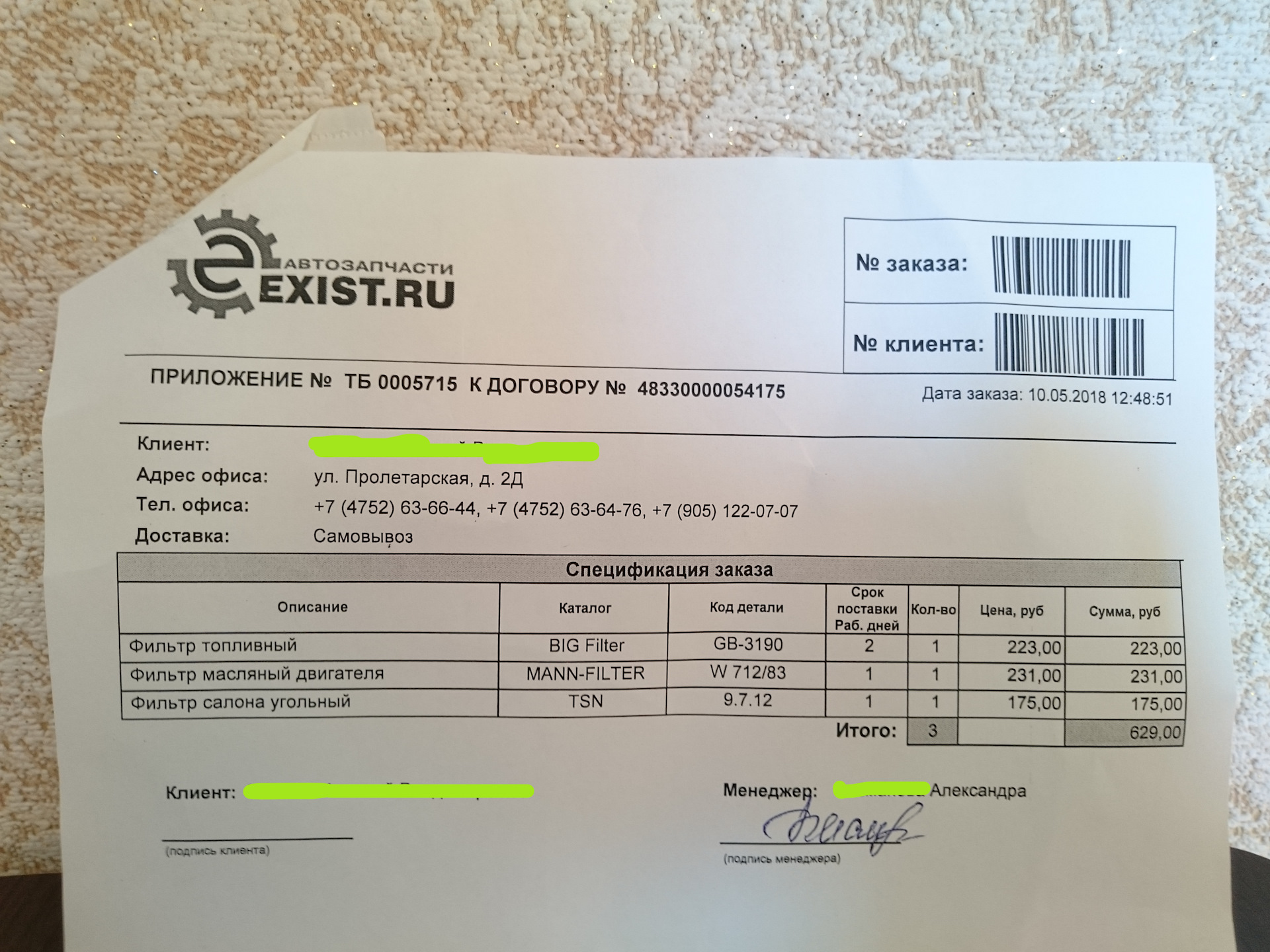 Удивлённый таким профессионализмом, заодно заказал и топливный фильтр, и масляный (как раз 20 тыс км набежало для очередного ТО).
