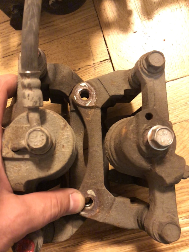 Подумай от задних.тормозах от Мазды 3. Супорт с приводом ручника…