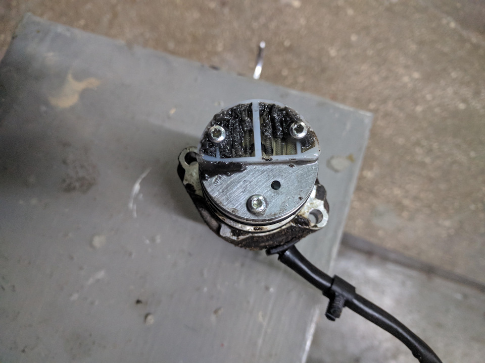 На фото насос с трассовым пробегом 140 тысяч, пенсостайлера, моего отца. Моя сетка по осени была забита ровным и более толстым слоем, привод был только спереди, ошибка была обрыв цепи насоса V181.