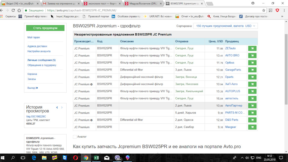 До этого на вольвовский отказ пришёл)) бабло на счету осталось. Так что заказал этот + фильтр масляный себе и жене 😂