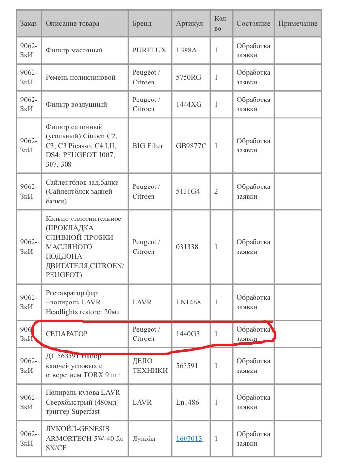 Артикулы: Фильтр воздушный Peugeot 1444XG, фильтр салонный BIG Filter GB9877C, сепаратор 1440G3