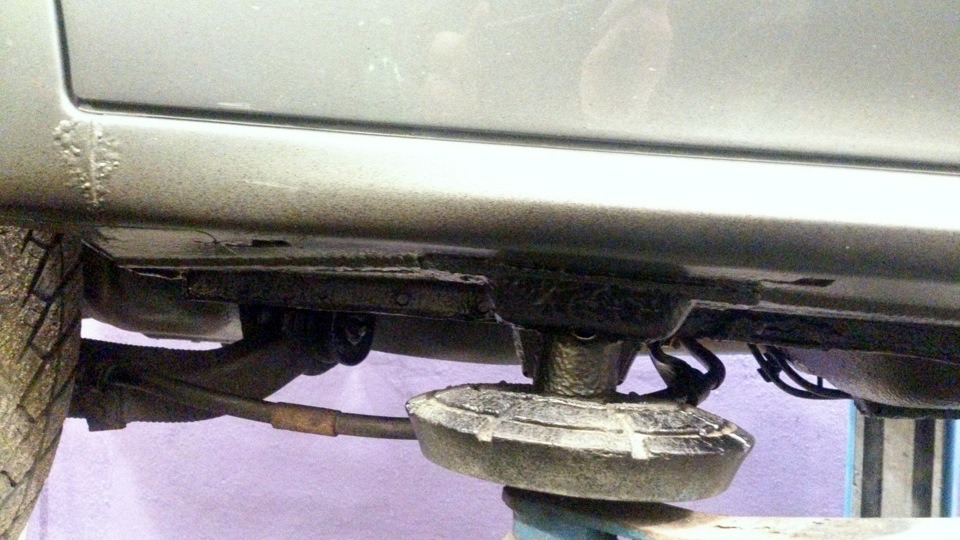 Не прав ты, объясню. Посмотри на свой оригинальный домкрат и на лапы подъемника. Тут не нужно быть инженером (хоть я и он) чтобы понять как будет работать металл. Оригинальный домкрат предполагает подъем именно на ребре жесткости оно и находится в районе выступающего шва. Там где лапа продавила просто пустота и лист металла, который, естественно, не выдержит. Решение? Опытные даже шиномонтажники либо делают резиновые накладки (очень толстые 2-3 см) для того чтобы не повредить этот выступающий шов и поднять как следует. Если металл уставший, то только машина поднимается на подрамнике.