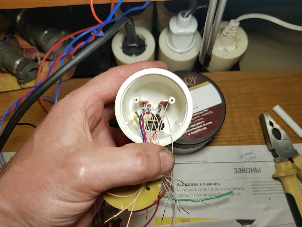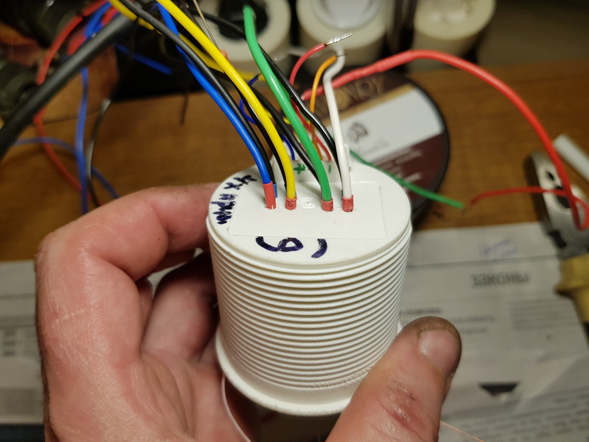 Провода светодиодов «сработки» вывел отдельно, 4 пары проводов и коммутировать их буду по факту, т.к. некоторые управляются «минусом», а другие «плюсом», т.е. сделал их сработку универсальной. На фото видно эти 8 проводов, позже их входы/выходы я залил жидким клеем (фото нет):