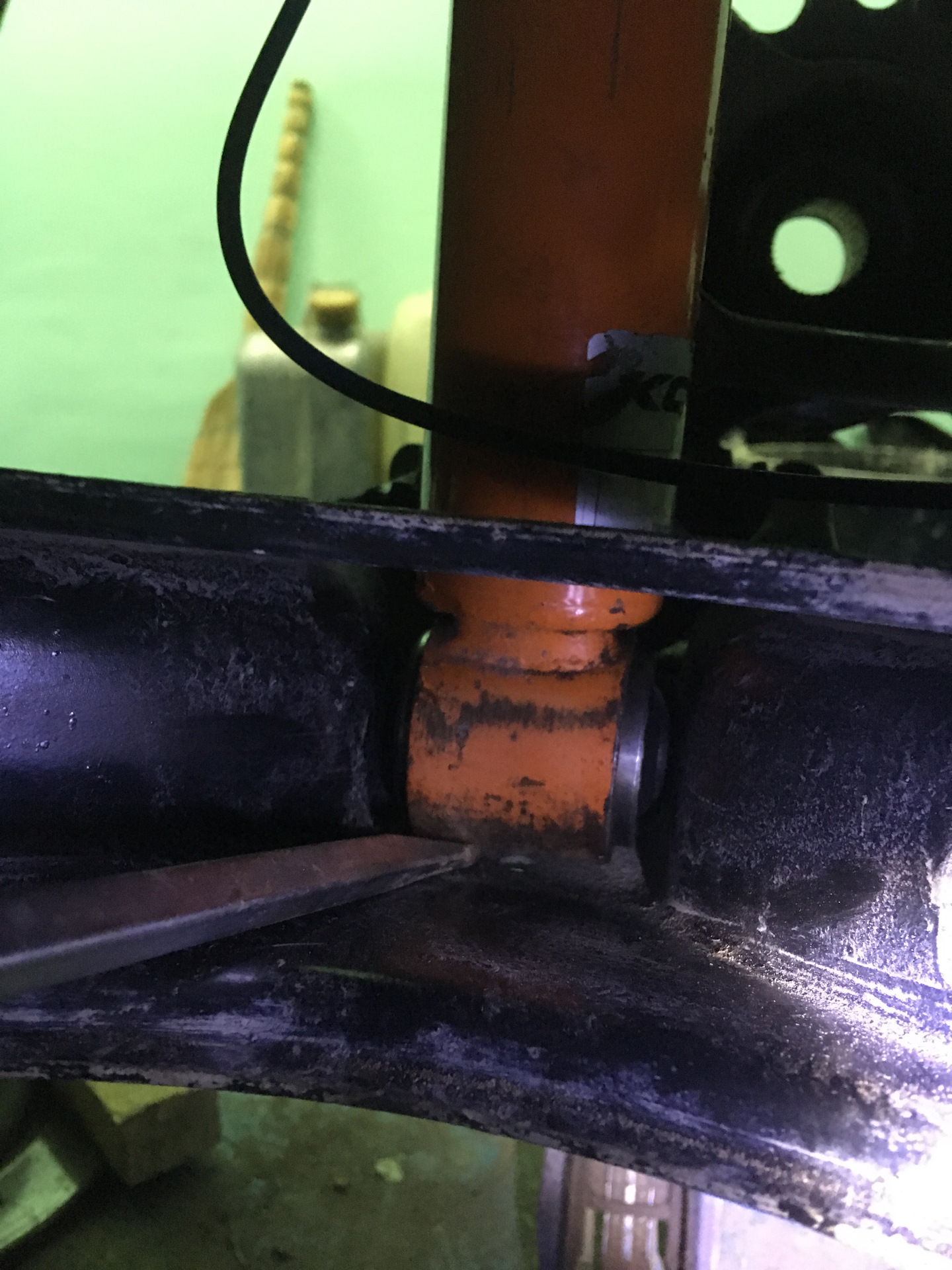 Сегодня собирал подвеску, посмотрел, там зазор где то 5 мм. Сайлентблок кони под весом авто сминается где то на 2-3 мм. Но может там грязь скопилась? Вполне допускаю, что в какие то моменты амортизатор может достать до рычага (у моих кольца снизу потерты, но стуков я не слышал). Если отпустить болт, поднять монтажкой аморт и снова затянуть, можно еще где то 1 мм выиграть. Но лучше заменить, сайленты, у коней они слишком мягкие.