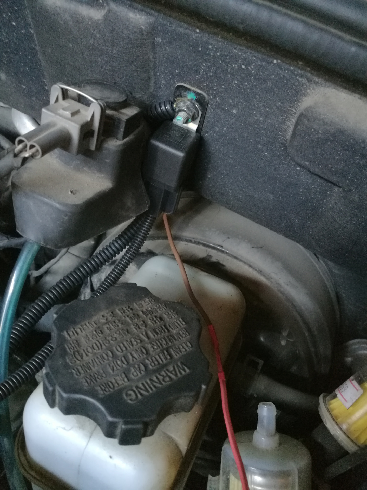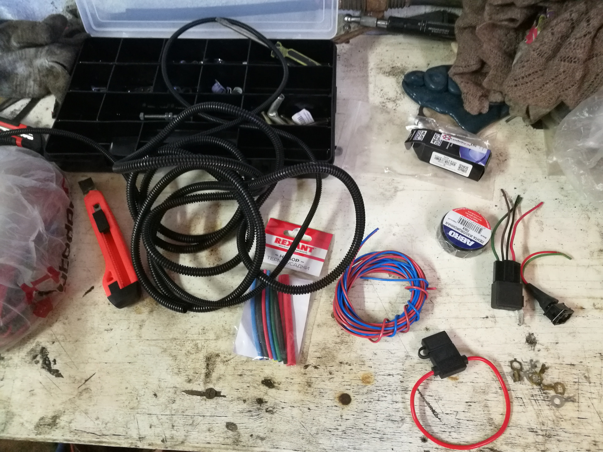 3) Реле, провода, хомуты, гофра, шланг, переходник 10мм на 8мм, разъем насоса — 1000р