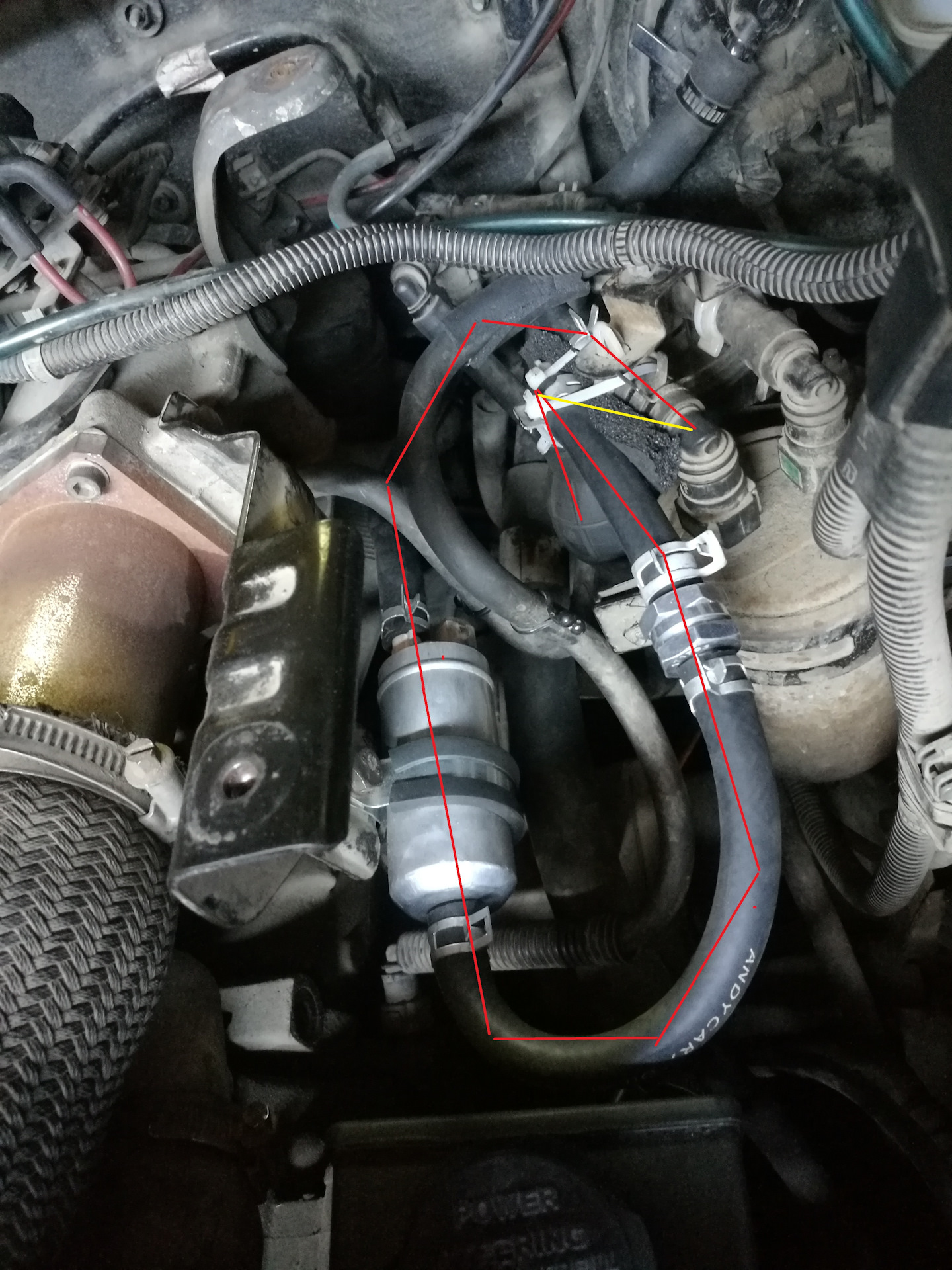 Желтой полосой выделил как было соединено, красным — добавленный шланг.