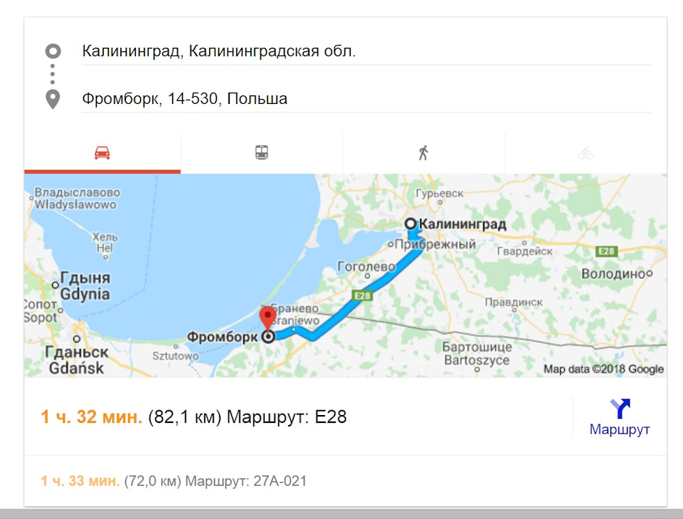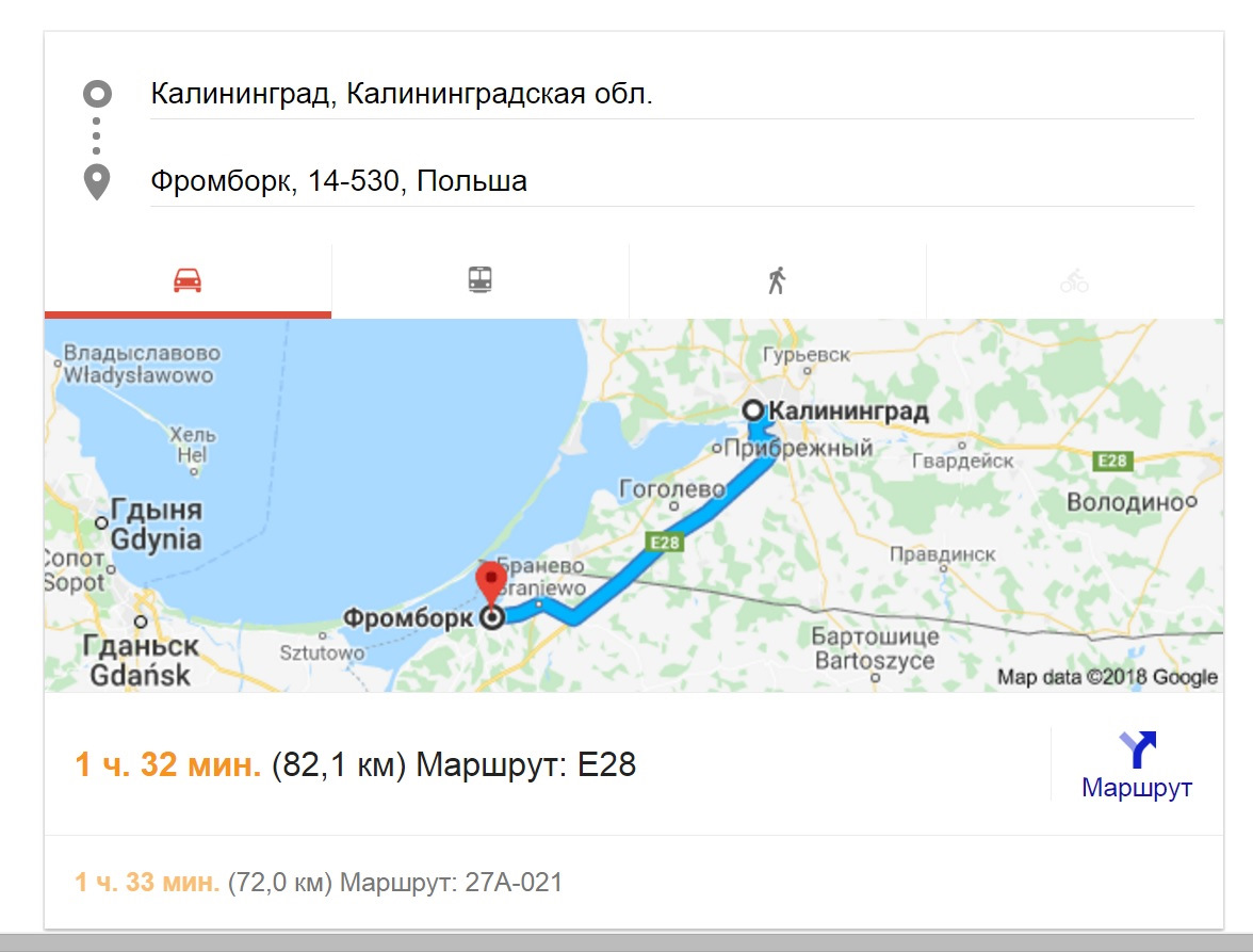 Пункт назначения город Фромборк.