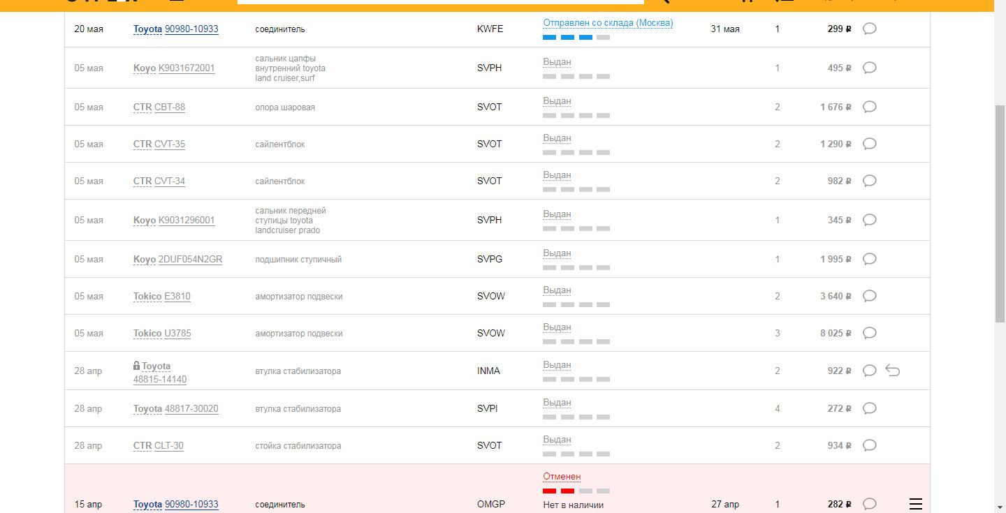 С марта месяца я потихоньку закупал запчасти ходовки на емексе…