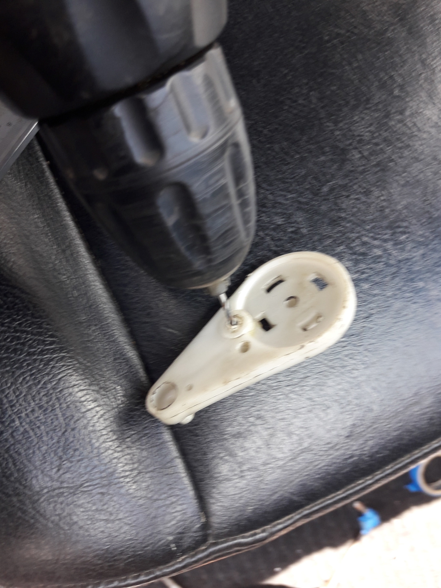 Как то стал замечать, что при нажатии кнопки рециркуляции воздух как дул с улицы так идует. Решил посмотреть что там происходит, а оказывается что моторчик работал а заслонка не переводилась. Ну думаю, дай разберу посмотрю ( я вам скажу ребята гемор это, ещё тот). Чтобы открутить там один шуруп нужно колхозить себе инструмент. Вобщем что было под рукой из этого и сделал ключ на 6.5, бита крестовая и изолента, что из этого получилось смотрите на фото. Ну ладно открутил, снял привод, смотрю что то не хватает. Пенёк который ставиться в паз обломился и остался там. Мысль как это сделать почему то пришла буквально за секунду. Замеряем диаметр этого пенька, сверлим отверстие в приводе, вкручиваем туда саморез и шляпку обтачиваем под нужный диаметр. Вот и всё, заслонка снова работает!