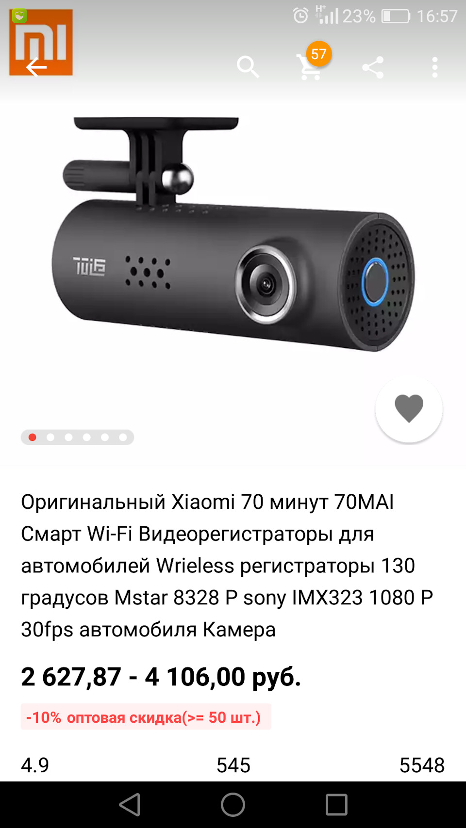 Мой старый регистратор highscreen проработав около 4 лет умер смертью храбрых. Я начал подумывать о приобретении регика взамен старого с вай фай. Выбор пал на продукцию китайской компании сяоми. Заказывал на али экспресс, сразу с картой на 32 гига обошелся по цене 3300. Время доставки около 3 недель. Экран у этой модели отсутствует, но это я считаю лишь достоинством, так как поставил регик за зеркалом заднего вида и он не мешает обзору и не бросается в глаза с улицы. Вай фай подключается быстро в случае необходимости просмотра и копирования видео на смарт. Один раз настроил и больше в настройки не заходил. Базарит регик по китайски и меню тоже на китайском :-). Качество записи замечательное и днем и ночью, угол обзора 130 градусов. Единственное замечание по поводу слишком чувствительного джи сенсора-при попадании колеса в хорошую ямку регик