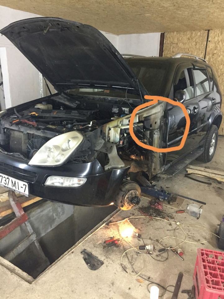 По переду а районе бразговика точно так же по фоткам и тоже накладка порога снята. На бампере не понял подрезал или нет, но подкрылок загнут.