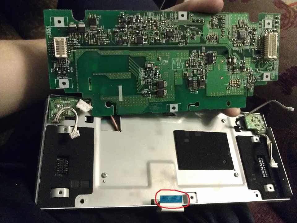 Все это откручиваем. Справа один конец (доступный) искомого шлейфа