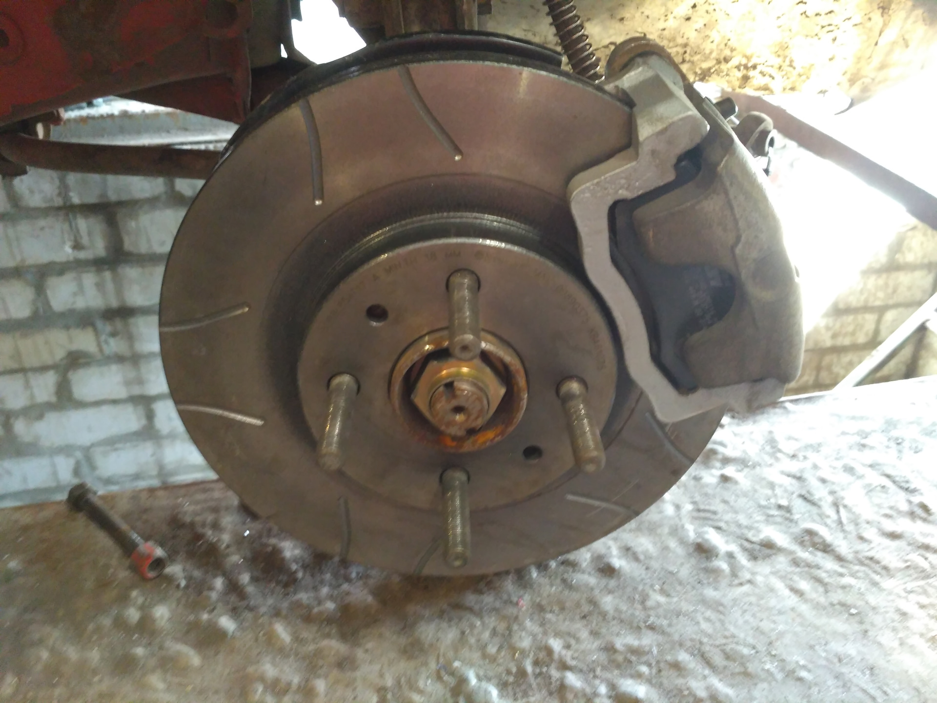 Планшайбы под ЗДТ можно установить так, что суппорт может быть как "сзади" диска и "спереди". Видел, что большинство ставит сзади. Я установил спереди, это должно уменьшить неподресоренные массы, поскольку суппорта в таком случае находяся ближе к оси вращения задней балки.
