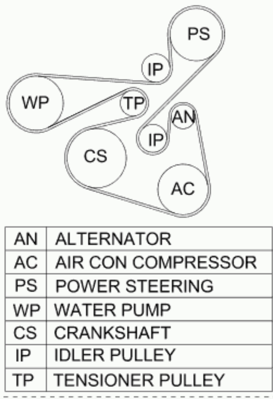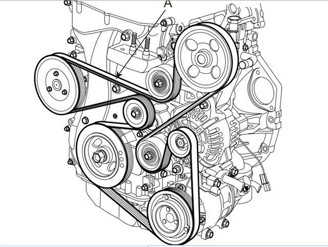 Ключ на 17 накидываем на болт ролика натяжителя ремня, на схеме красный, и вращаем по часовой стрелки, чтобы отодвинуть натяжитель и освободить ремень.