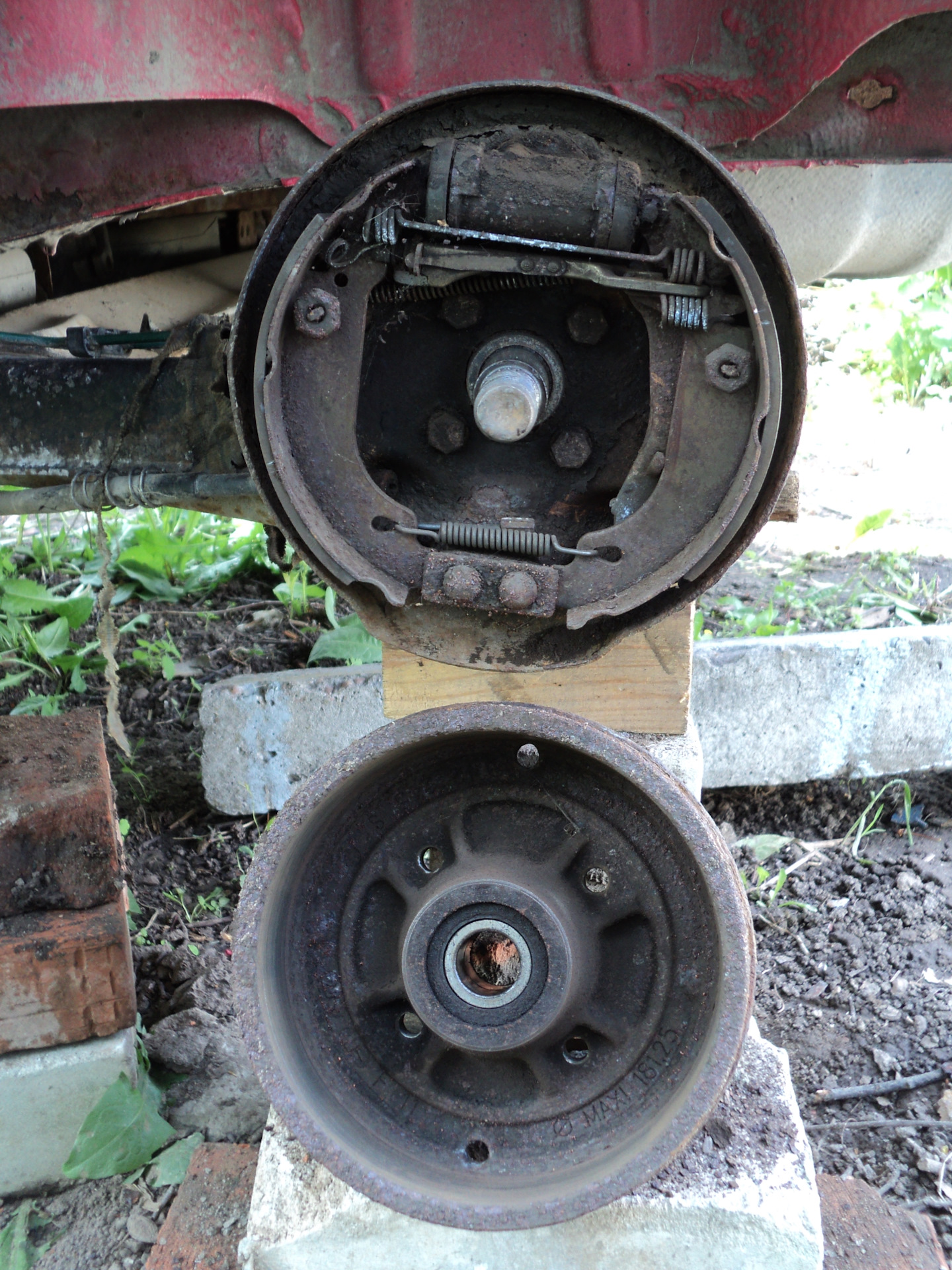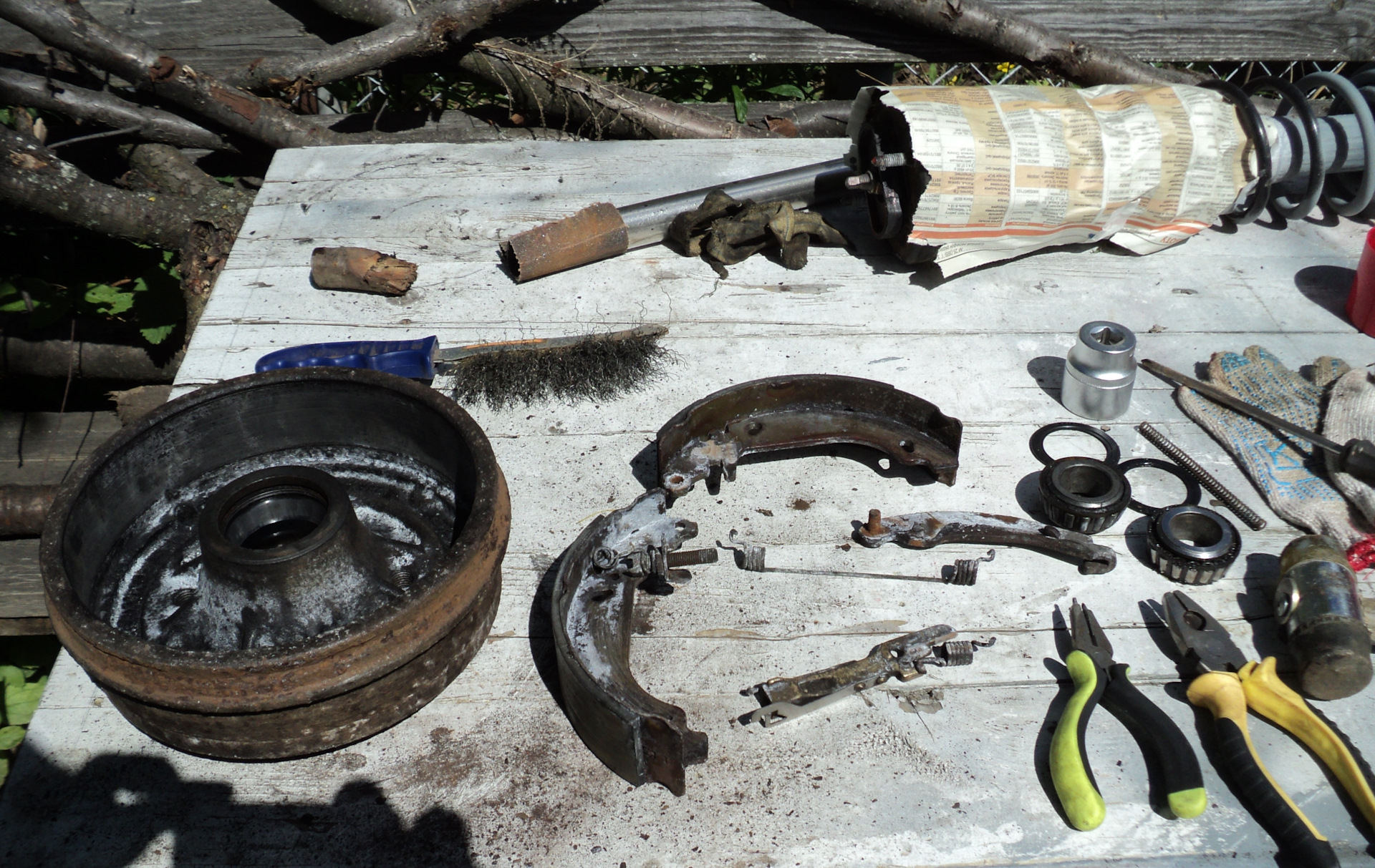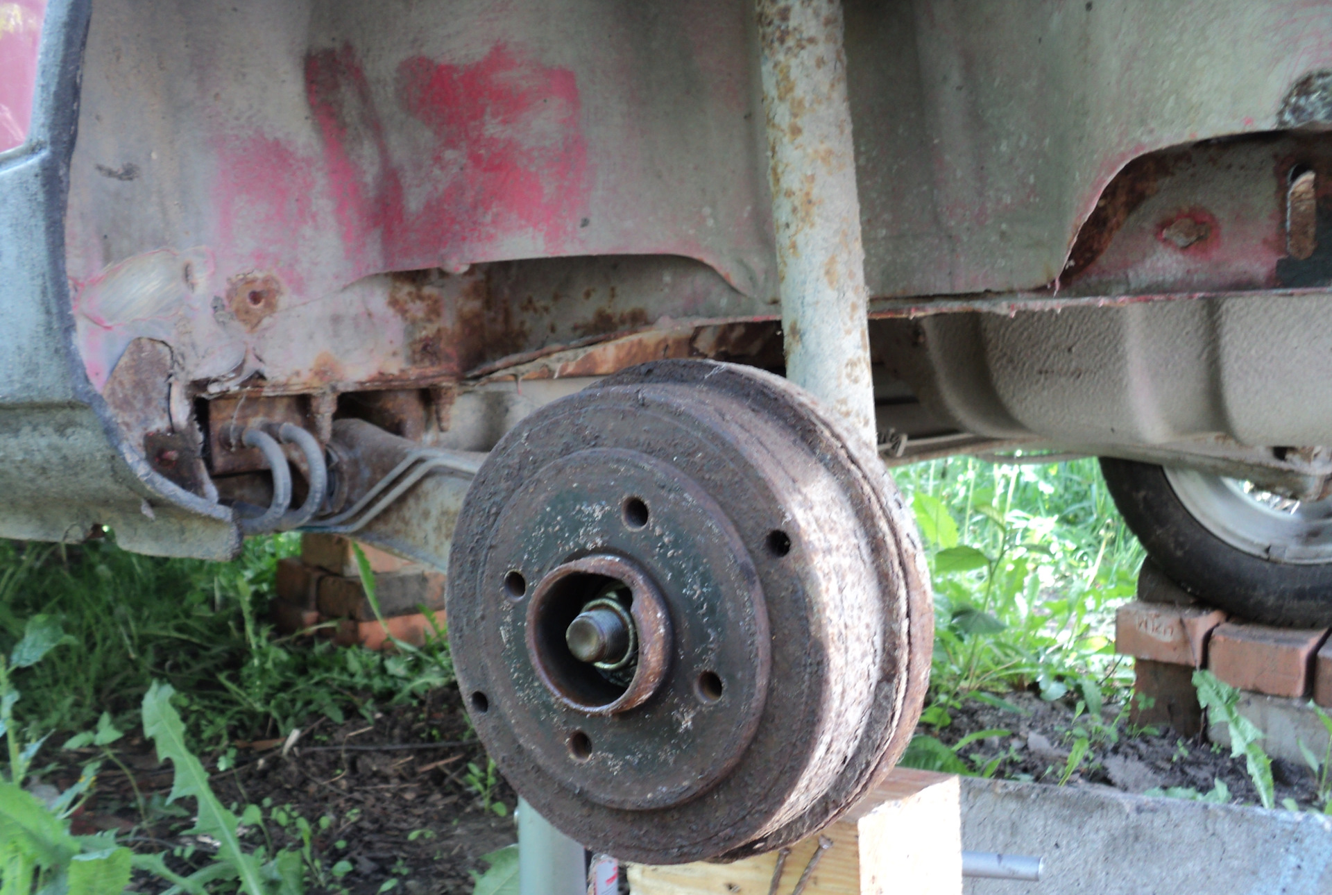 Подобное притягивает подобное, гласит закон слияния. Если не мыть и не чистить детали, узлы и агрегаты автомобиля, то в скором времени грязь и влага омрачат жизнь нешуточно. С моторным отсеком более или менее ясно: регулярно смотреть под капот — это как предполетная карта пилота. А вот в колесные ниши часто ли мы заглядываем? Предыдущий владелец твингушки похоже делал это крайне редко. Грустная песня о стойках, дисках, барабанах и ступицах слышалась в скрипе колес… Картину дополняли рыжики и отслоившаяся мастика…