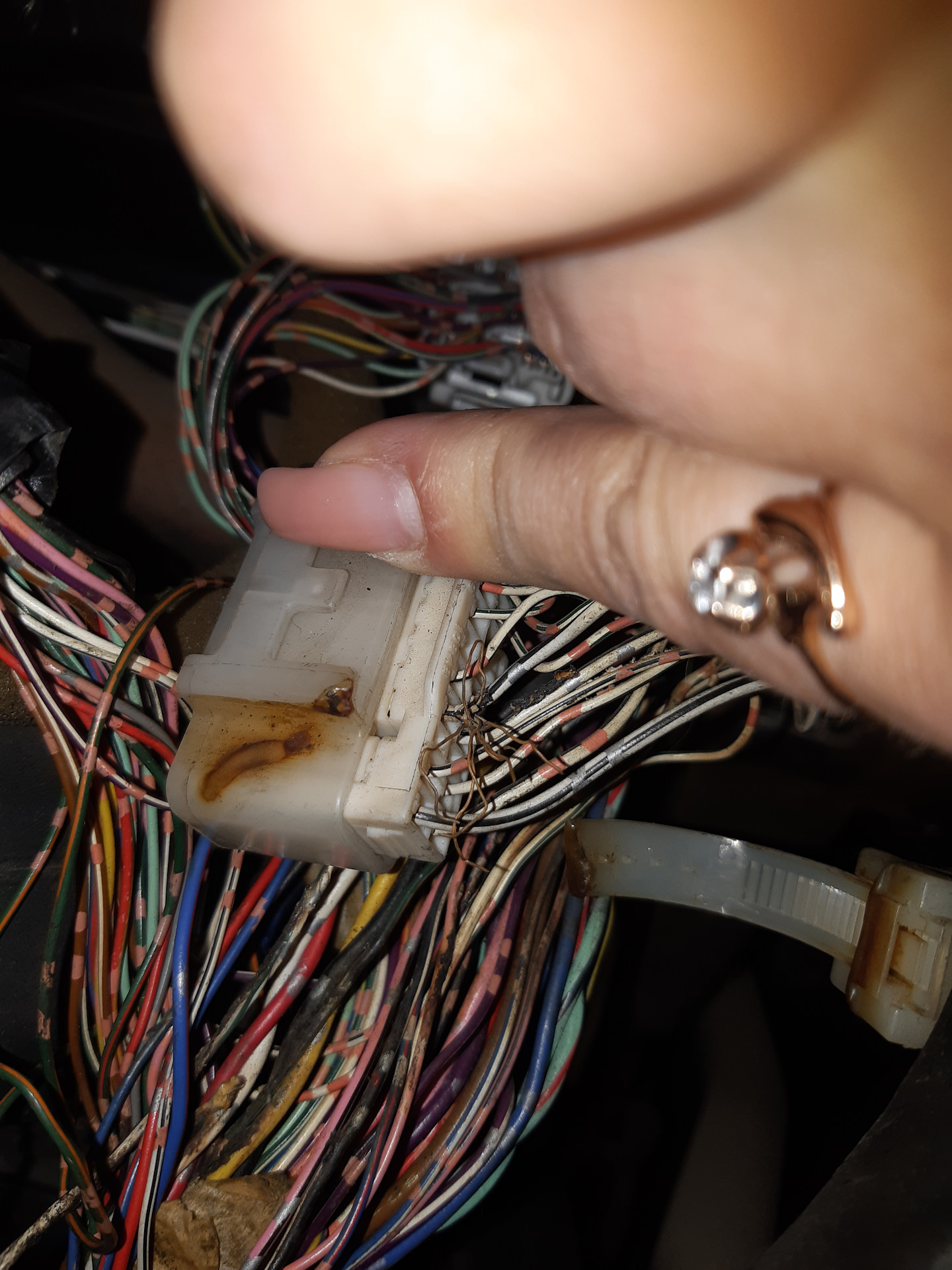Согласно американской схеме второй провод красно-синий шёл из соединителя к часам и cigarette lighter. Его обрывки нашли за тахометром. Там все мертво. Решили кинуть новый провод. А когда из блока предохранителей его вытащил электрик, там конечно кошмар.
