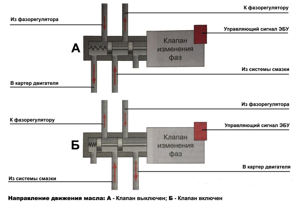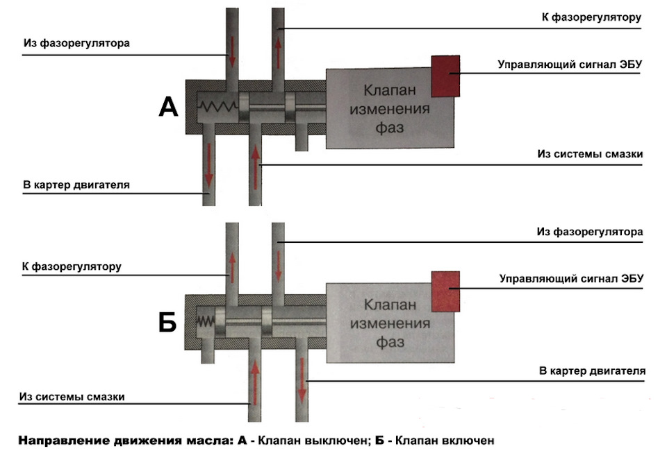 Смотрим принципиальную схему циркуляции масла через клапан.