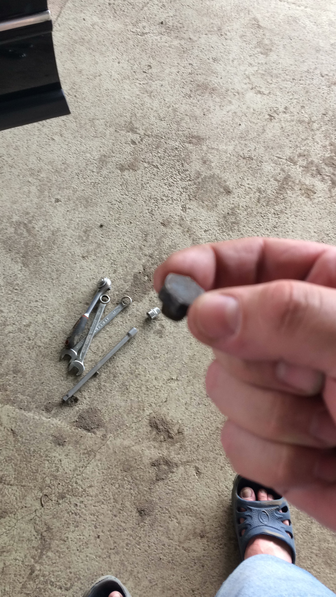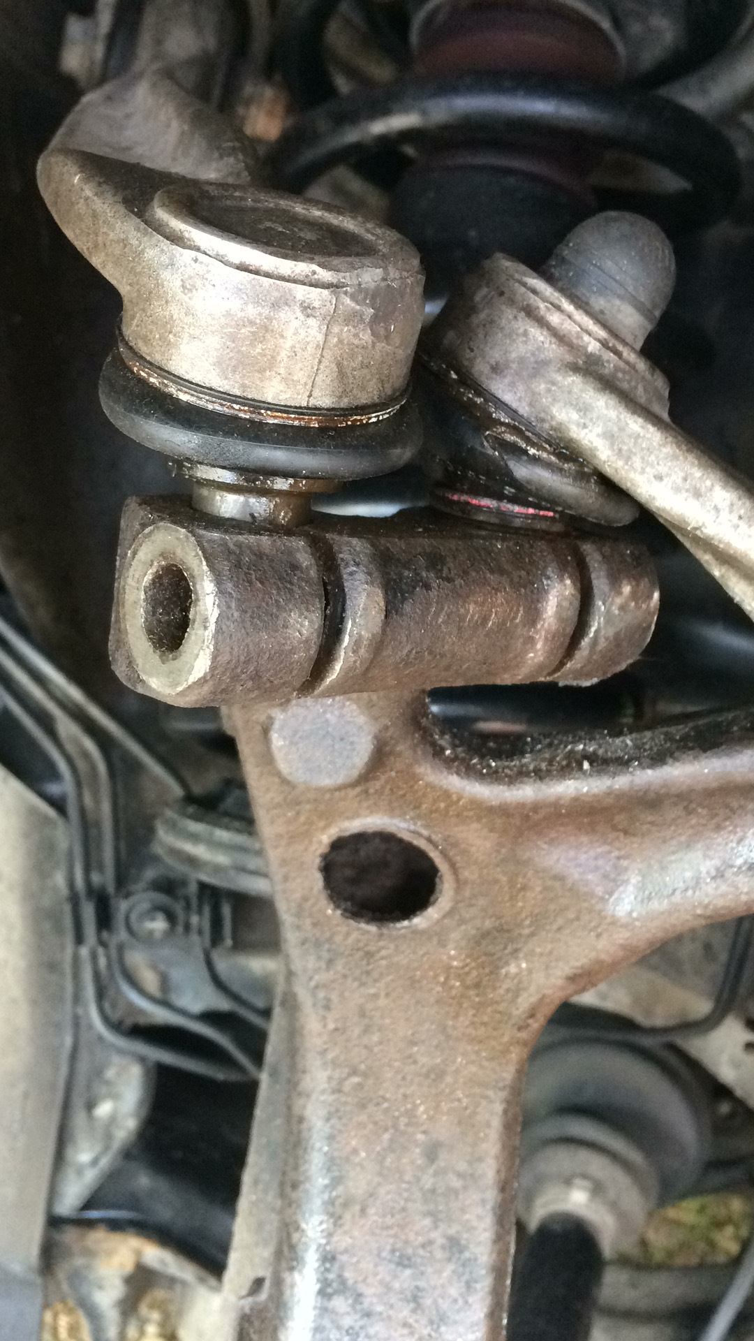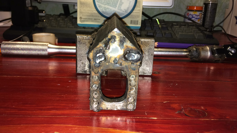 — далее мне стало лень сношаться столь жестоко и я сточил гайку и бур с болта, накернил его и высверлил (сверло на 4, а далее аккуратно на 8, главное ровно просверлить), а остаток болта я выстучал обрезанным гвоздем, и все бы здорово, если бы не закис болт рулевого наконечника, тот что зажимает его в кулаке, не выстукивался, за что я его и высверлил.