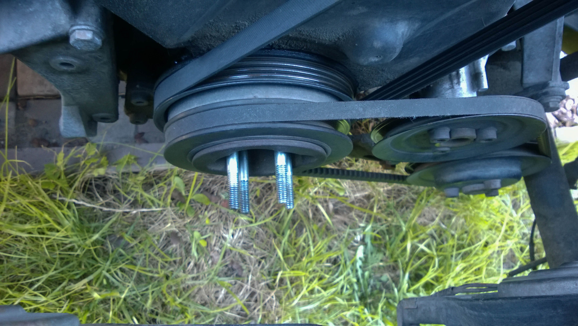 Во время натяжения гайки сильно тянуть не нужно — чревато тем, что шкив деформируется об ремень. У меня так и получилось в первый раз, пришлось его рихтовать.