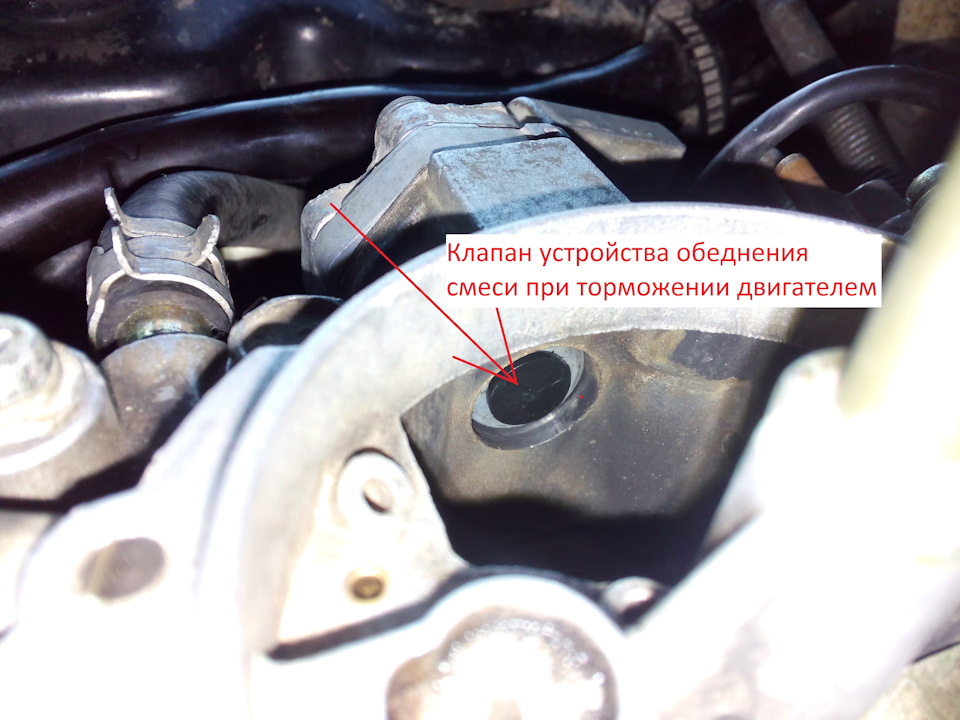 Писали что надо проверить…" Устройство обеднения смеси при торможении двигателем"…где его искать? Сверху впускного коллектора не нашел…ХЕЛП!