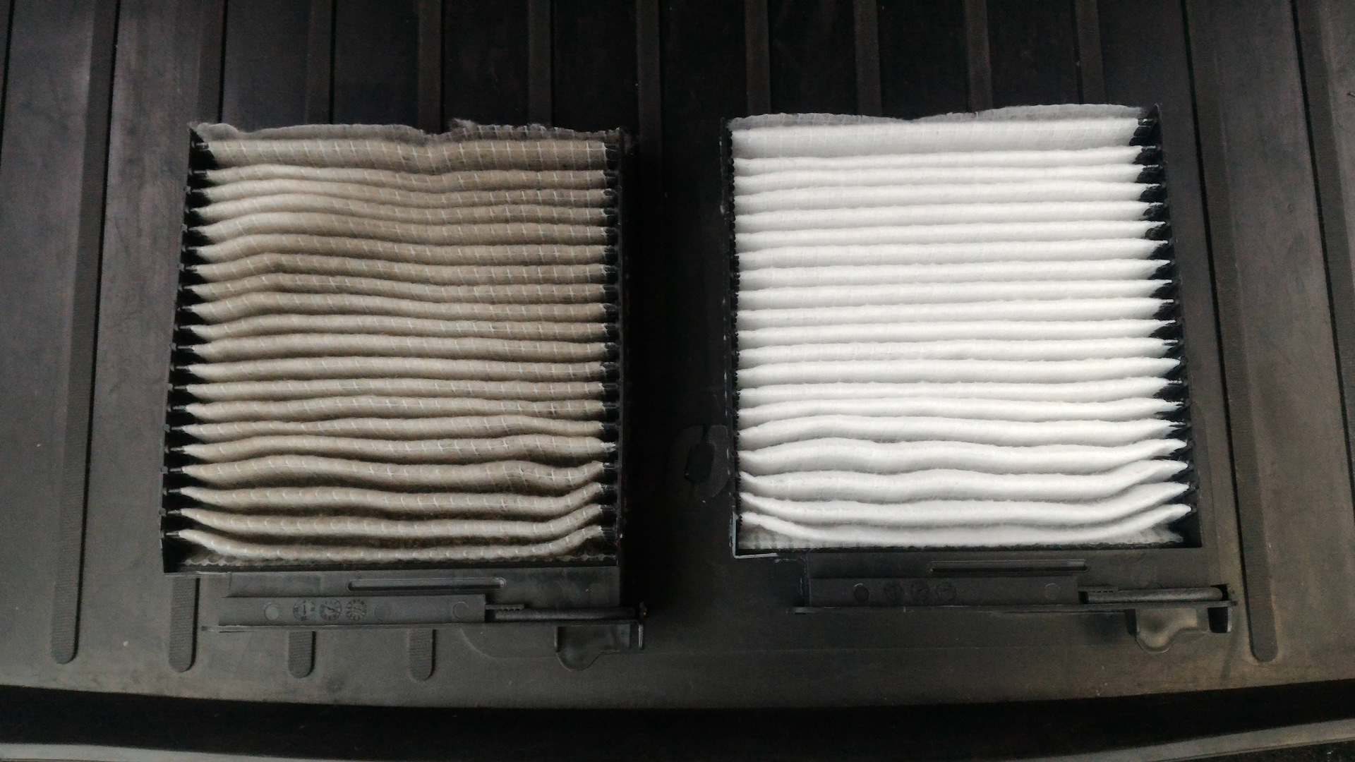 При замене фильтра салона я обратил внимание на то, что старый фильтр салона выглядит весьма не плохо. Вот старый фильтр в сравнении с новым: