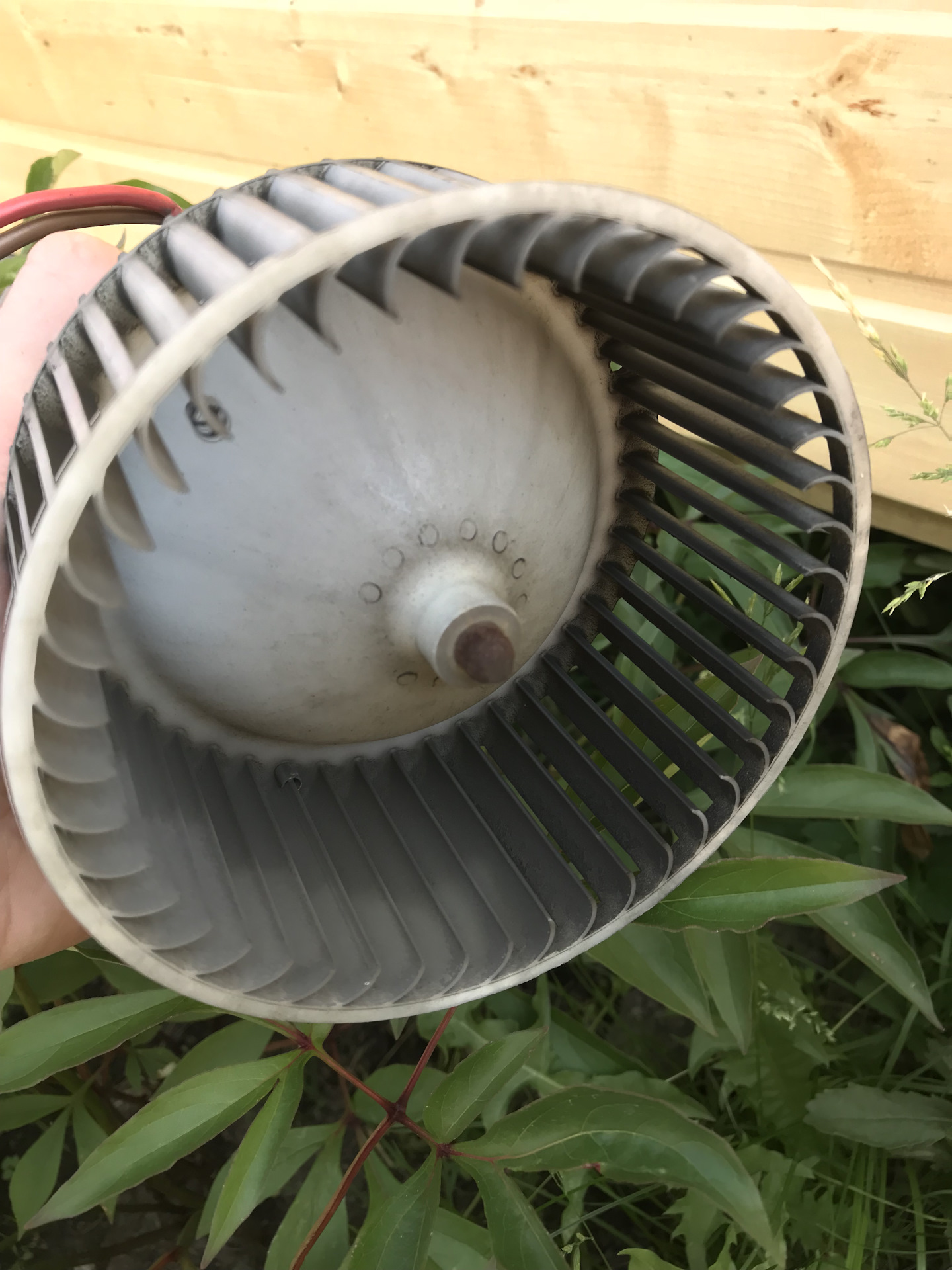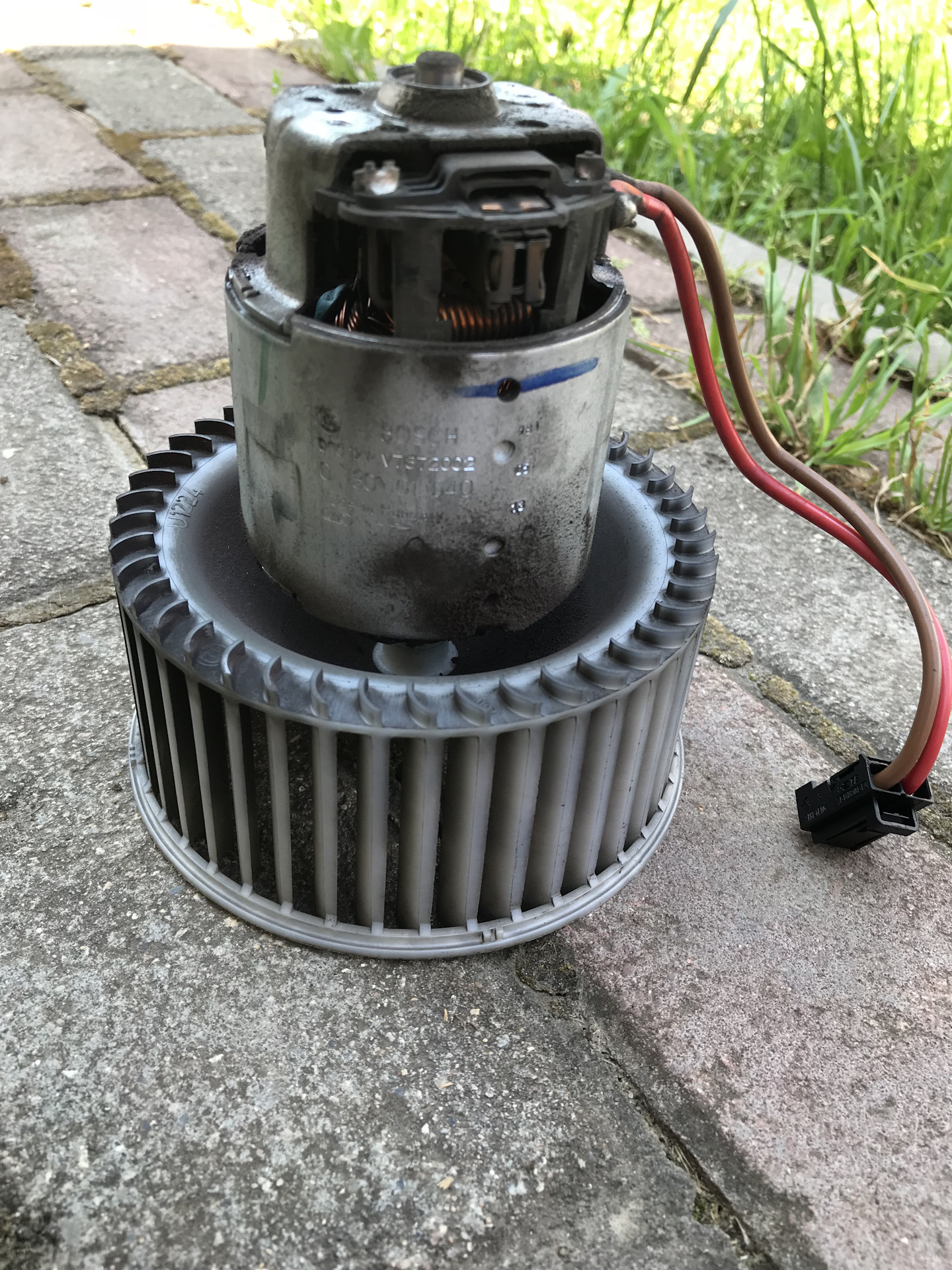 После демонтажа продул моторчик, смазал с помощью шприца вал с обеих сторон и промыл пластиковую крыльчатку в тазике с водой.