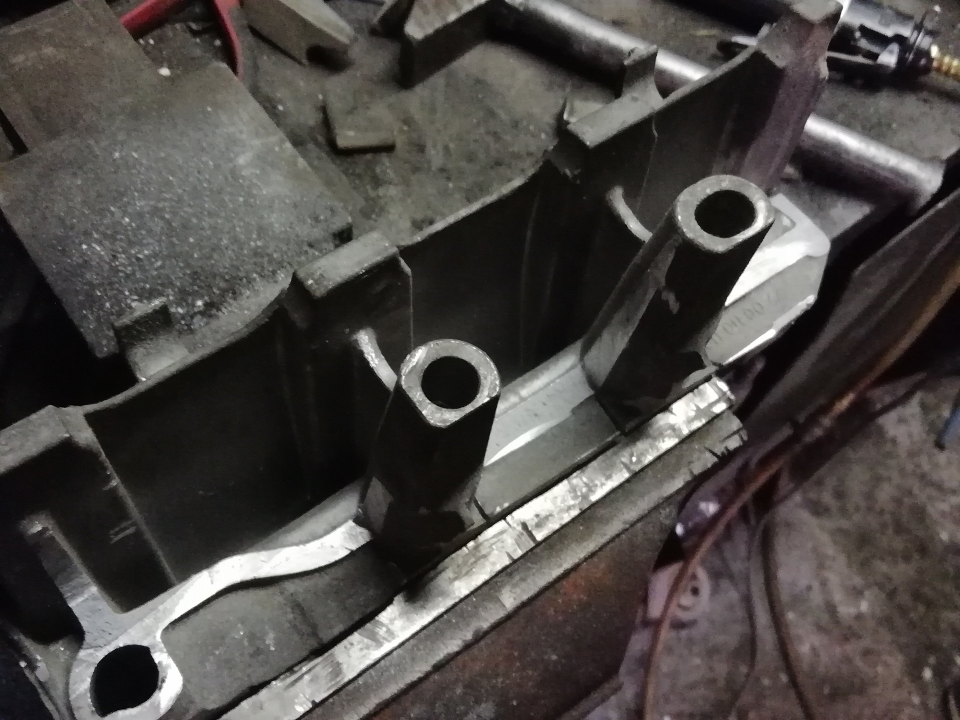 На фото видно куда штуцеры вырезал. Рампа закреплена снизу вот той штуки, которая болгарской распилена.