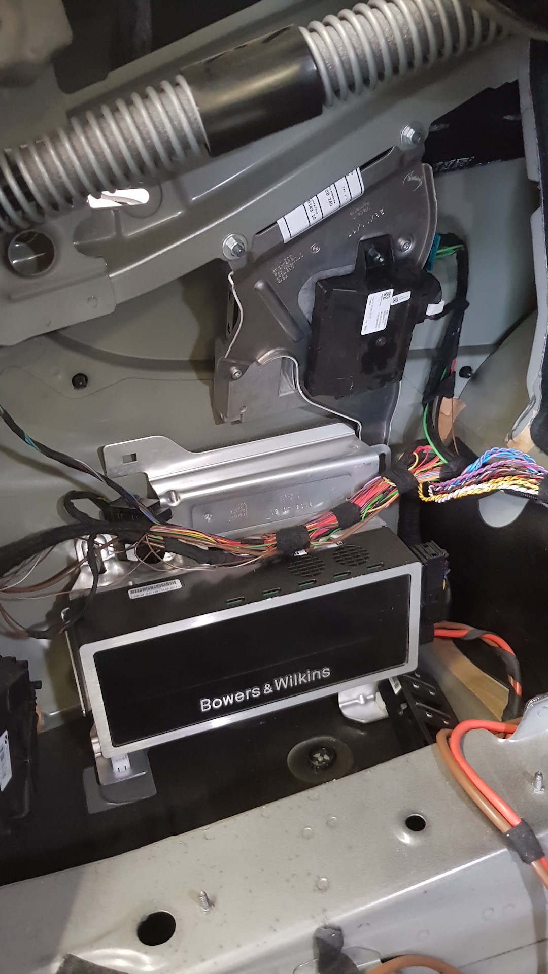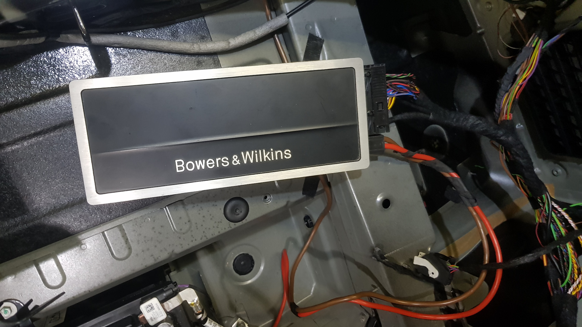 Так как я лет 15 активно увлекался High End аппаратурой, то фирма B&W мне хорошо известна. И её репутация в разделе Home Audio достаточно высока. Надеялся, что и в автомобильной сфере она держит марку. Но стоило мне увидеть первое фото с разъёмами и проводами, идущими к динамикам, как всё с большой долей вероятности сразу стало для меня ясно — откачка денег за имя. Ведь не могут в нормальной системе за тысячи баксов использоваться коннекторы и провода за копейки — это как новую M5 нарядить в колёса от ГАЗ-53 и выставить на трек. А какое влияние коммутация и проводка оказывают на звук, мне хорошо известно. Я уж даже не говорю про усилительный тракт. Уверен, что данная система безусловно играет ощутимо лучше Harman-Kardon(слышал у друга в Х6 — ничего особенного), но тех денег, что за неё просят, она явно не стоит. Хорошо хоть на силовой провод меди не пожадничали.