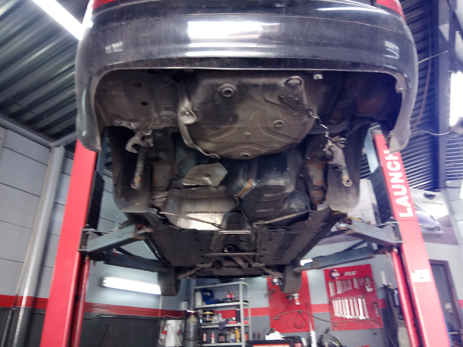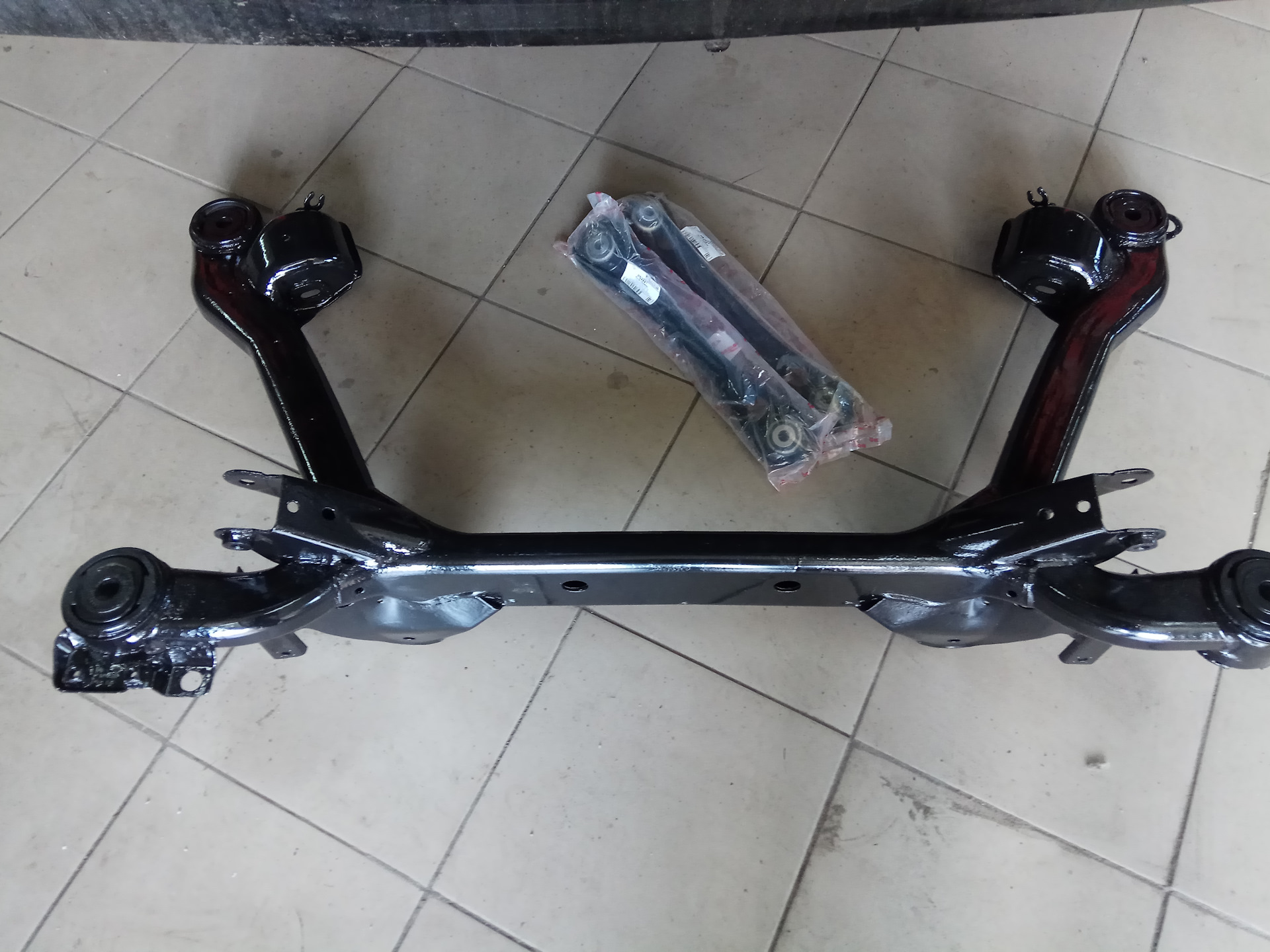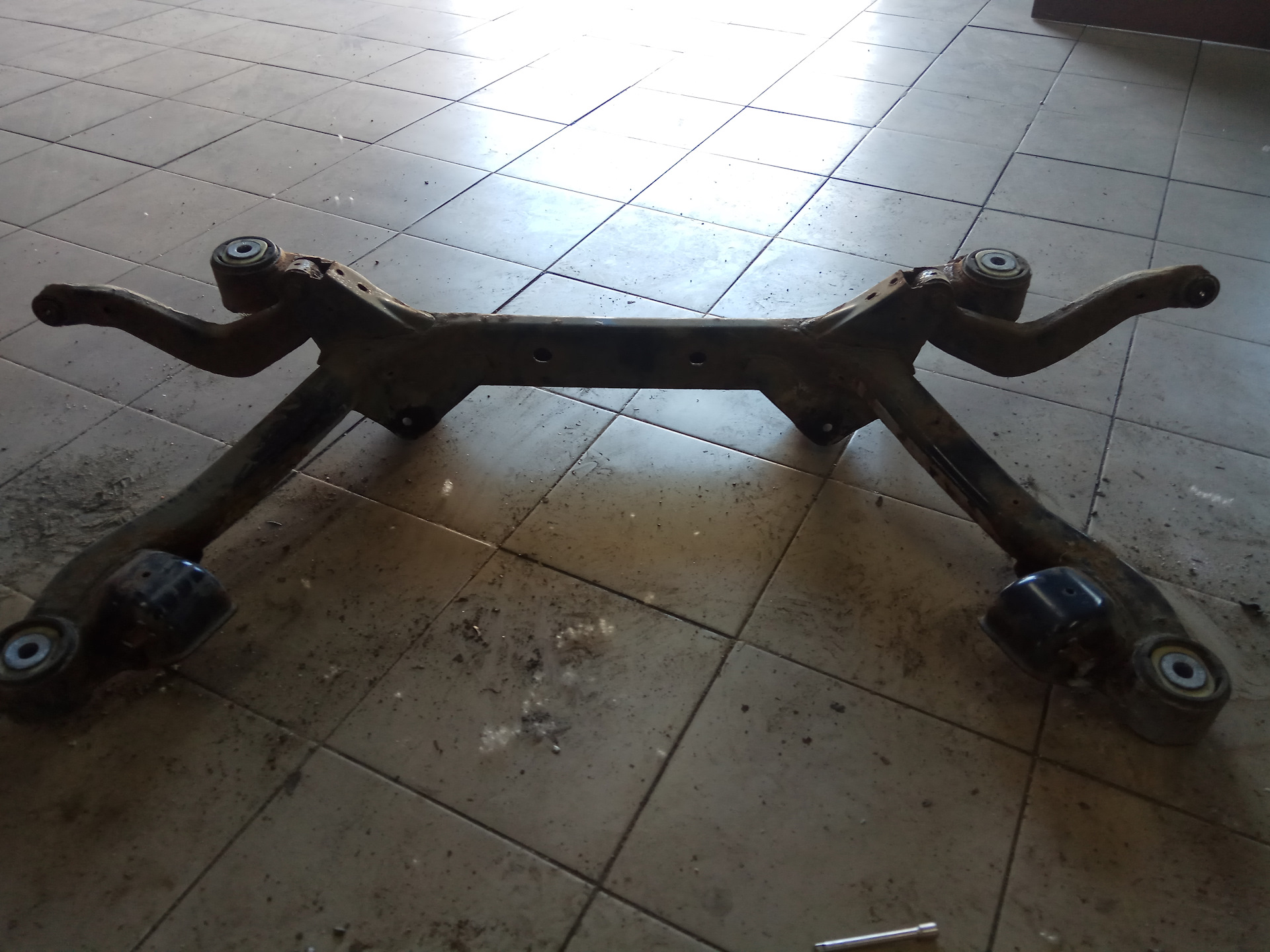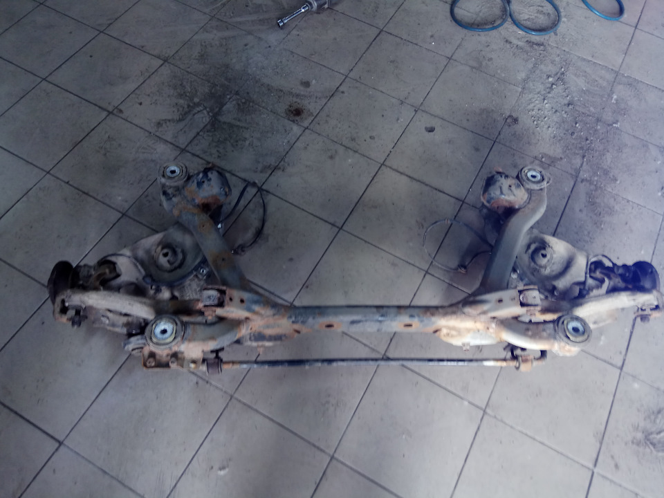 За последний месяц было проделано много работы по машине. Т.к. ездит она много и каждый день — решил перебрать всю подвеску. Начал с задней части. Снял колёса, открутил суппорта и отключил датчики АБС с тросами ручника. Открутил два болта снизу стоек и четыре болта задней балки и — задняя балка на полу…