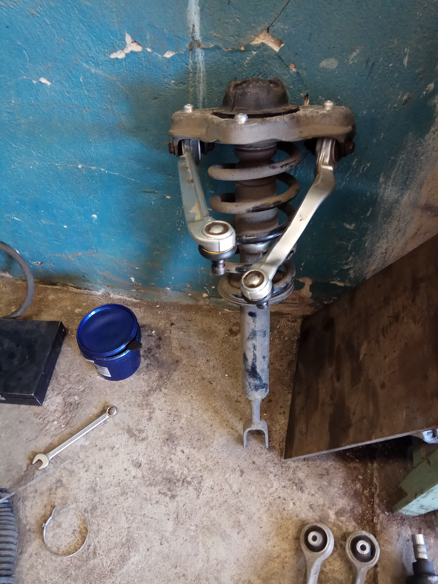 Дальше весь этот процесс с перепрессовкой сайлентблоков затянулся аж на 3 дня. Долго запчастей ждал, попутно менял все развальные болты, не всё откручивалось даже на полу !