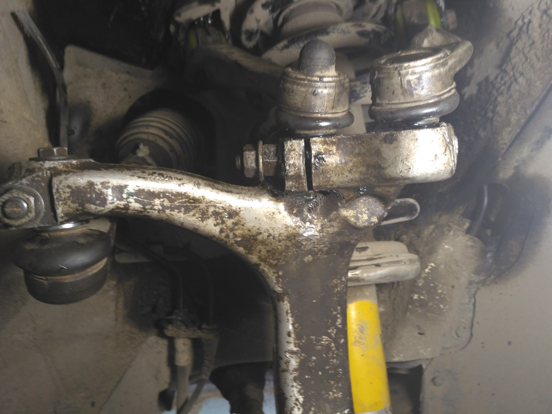 Два верхних рычага с обеих сторон болтались вверх и вниз цепляясь проточкой в шаровых за этот болт, что чудом не дало им повываливаться.