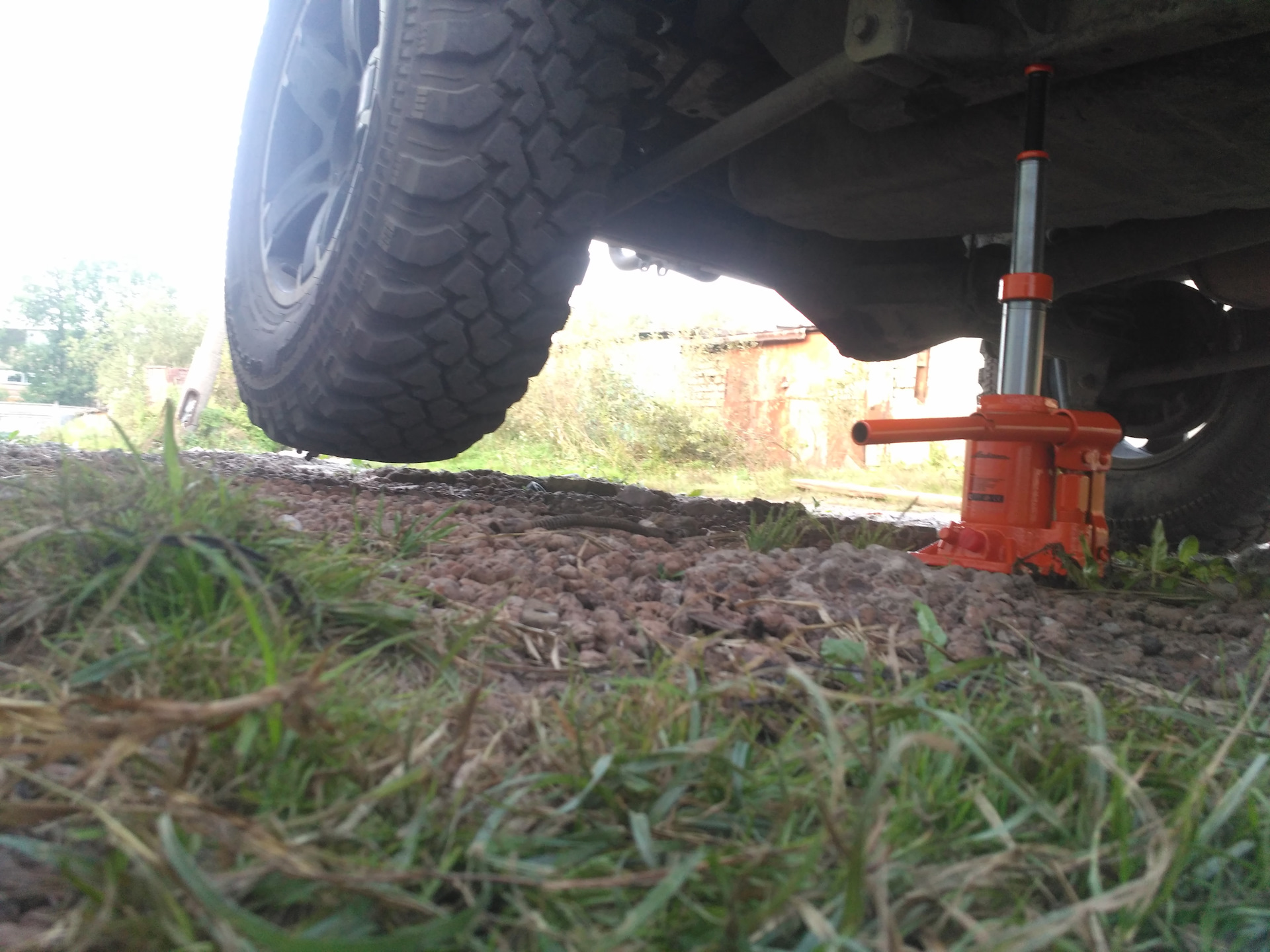 По совету andruxa61rus приобрел по вкусной цене домкрат. Хорошая штука. позволяет домкратить лифтованную машину не стоя на карачках. Крутить легко. Только долго…