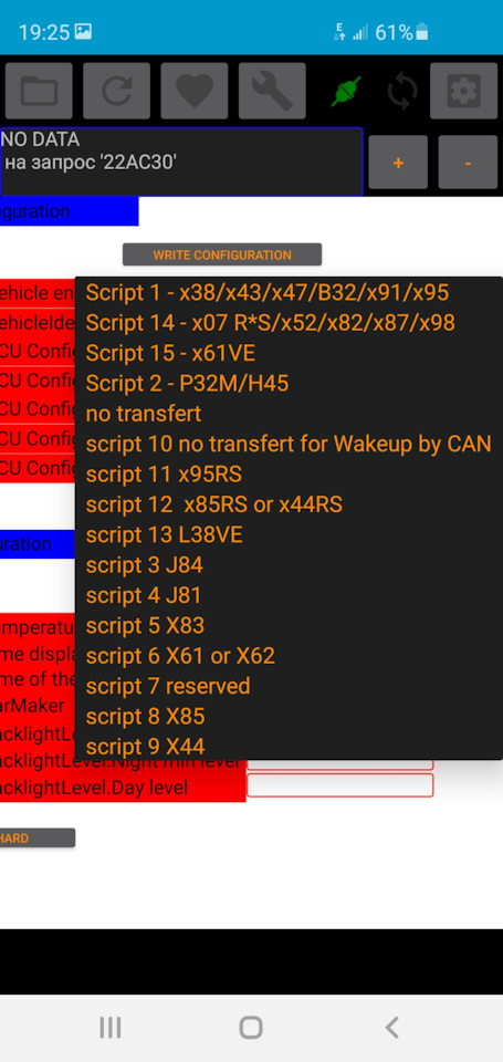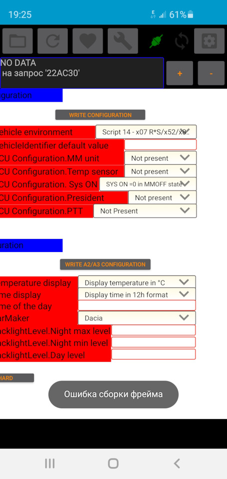 Не записывает скрипт.в этом разделе 1й скрипт ставлю 14й не запоминает.может блок bic не на связи. Машина рено логан 2.В DDt all почти везде no data