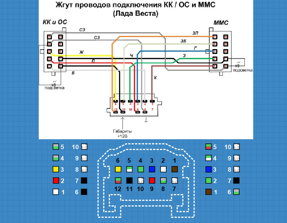 Так же для архива немного дополнил схему от Viktorch48 точными цветами проводов накладки от Весты.