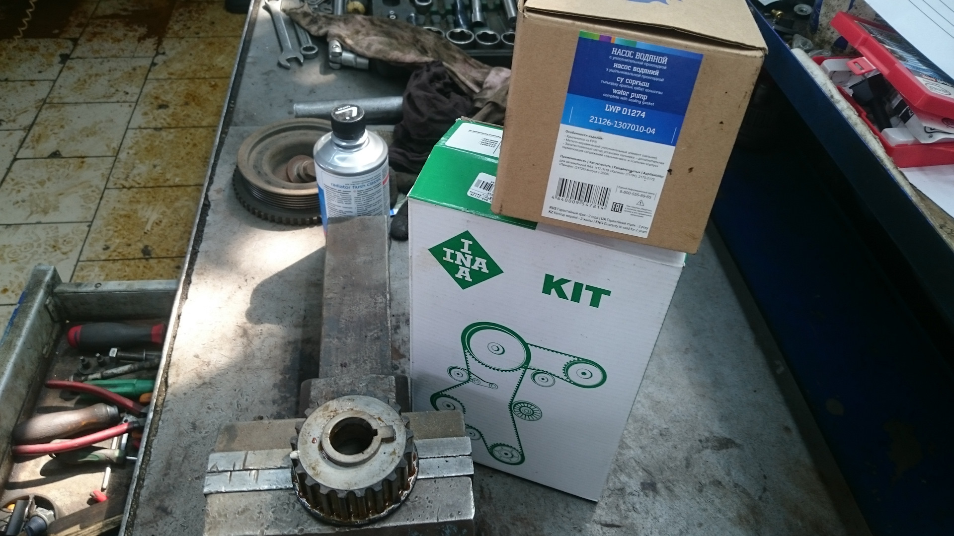 Заменил Комплект INA, помпа Luzar Turbo(кстати очень понравилась, производительность явно лучше, работает отменно, по кач-ву не скажу.), шкив Колена, еще заменил два ступичных задних подшипника В общем работ на 6750р. + запчасти.