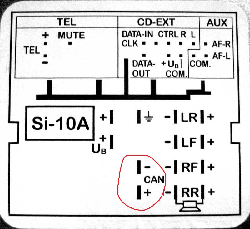 Вставляем в наш переходник(там пустые слоты под CAN) по схеме, она же приклеена на верхней панели мафона.