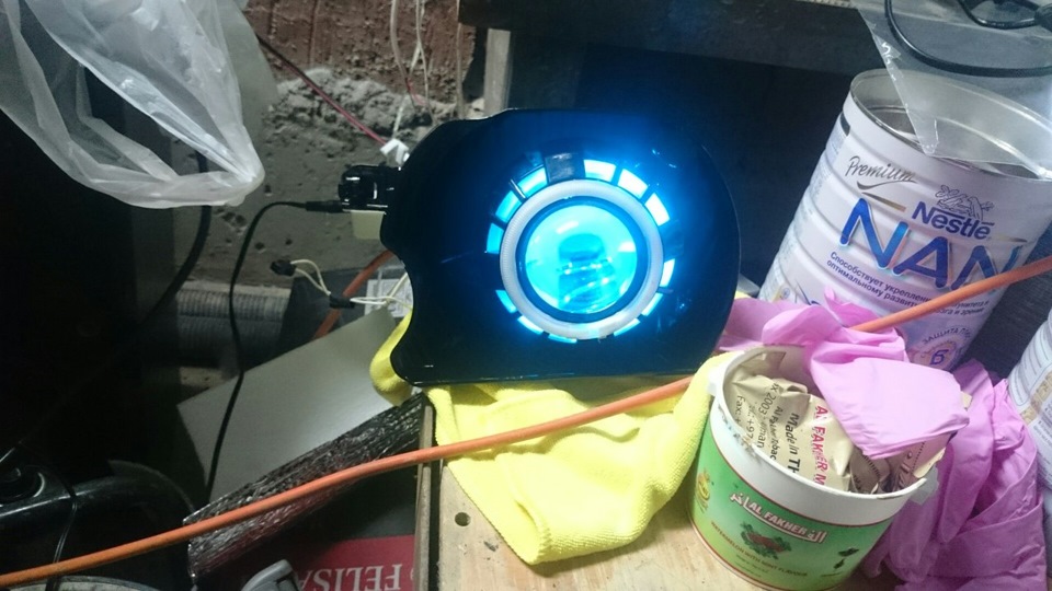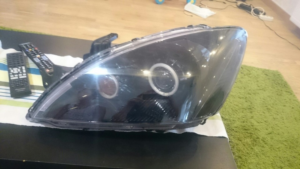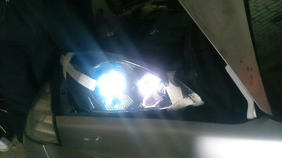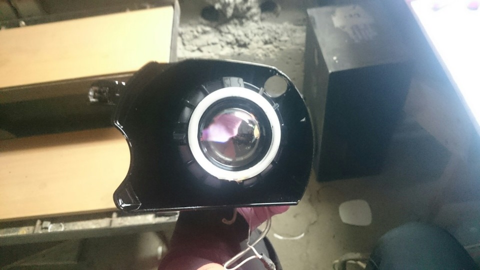 после этого мы перешли к установке третей пары глаз, которые будут(как и были) над поворотниками!этот процесс фоткать не стал, т.к сложного ни чего нет, намазал, приляпал! потом мы приступаем к очистке корпусов и стекол от старого герметика! Дело неблагодарное но нужное! после чего устанавливаем отражатель и маску фары на место, вычистив их как котовы яйца! Аккуратно наносим герметик по всему периметру корпуса фары, и клеим стекло! проблемные места заматываем малярным скотчем! Получилось как то так!