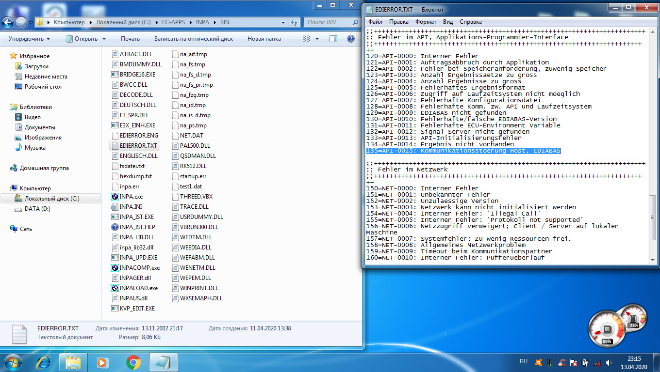 Сегодня хотел попробовать кз убрать через тул 32 и ошибка ediabas fehler 28 . Что за хрень. рейн по прежнему работает, стирает.