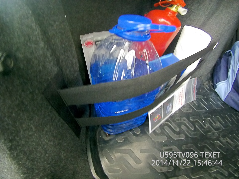 Переживал, что липучки не справятся с нагрузкой, но даже устроил небольшой тест-драйв (фото с двумя канистрами с водой, поставил их так чтобы растянуть резинку по максимуму) липучки на удивление справились, что меня очень порадовало!)
