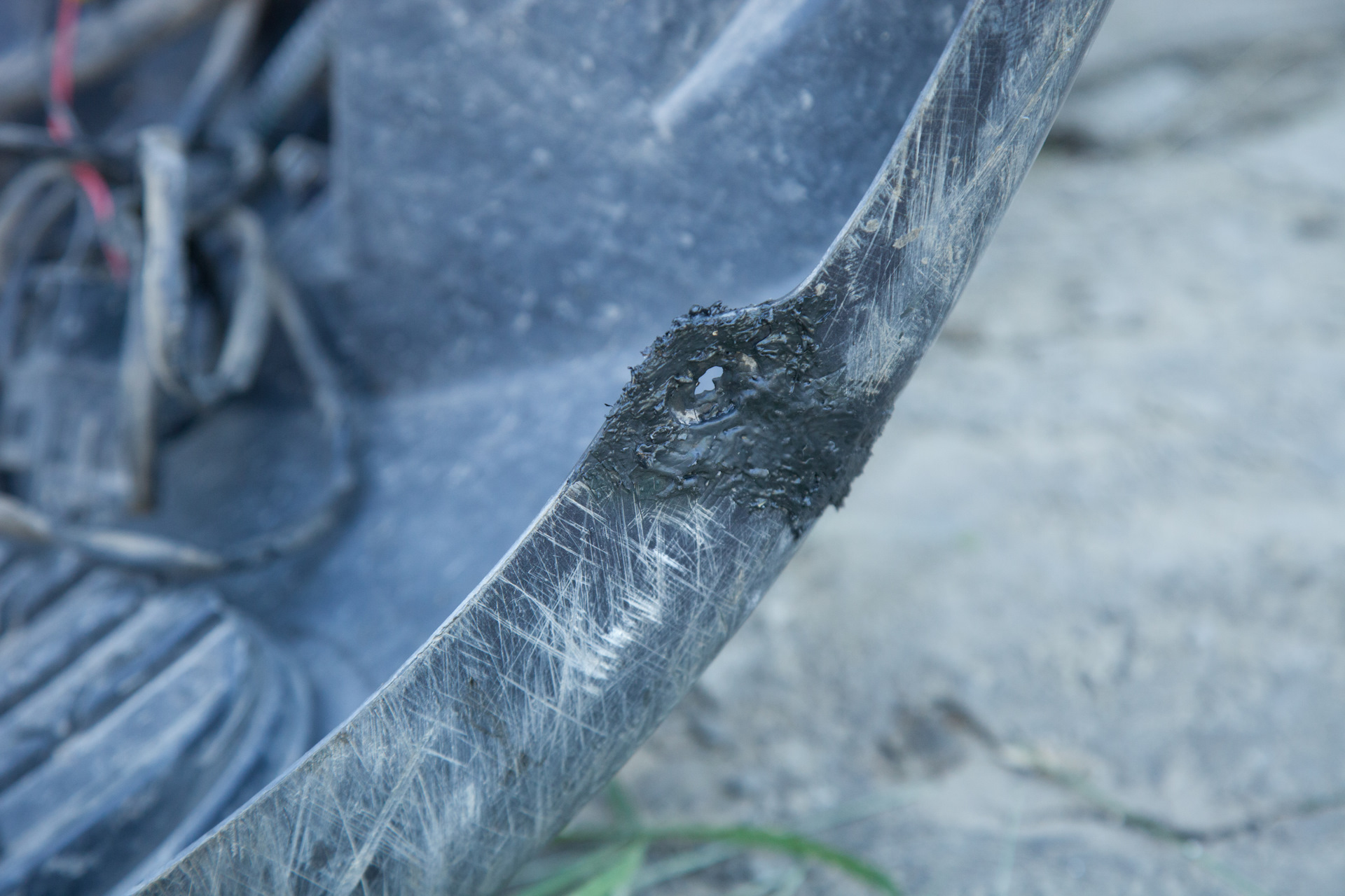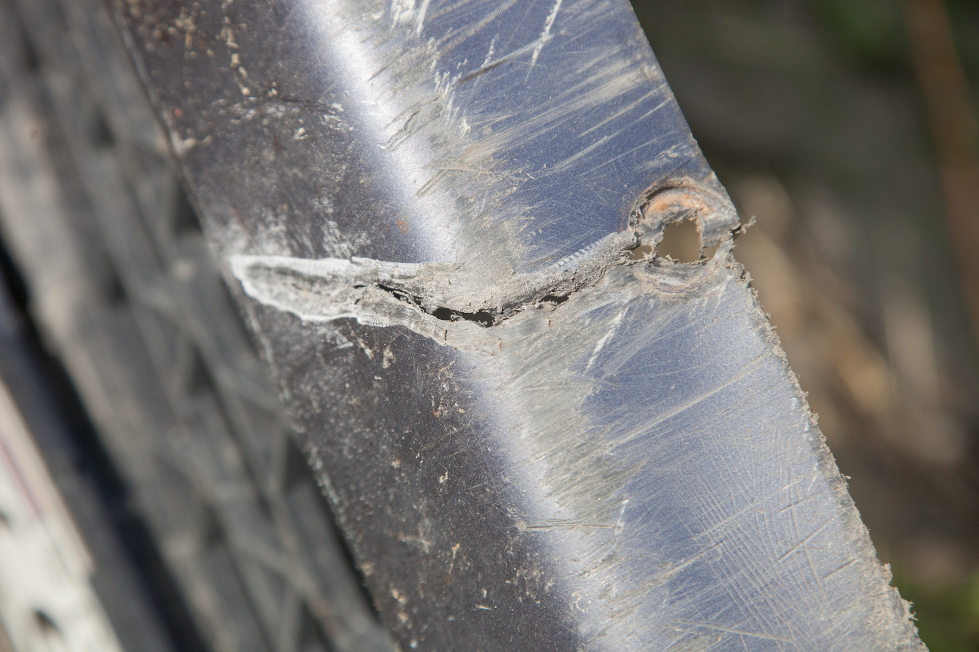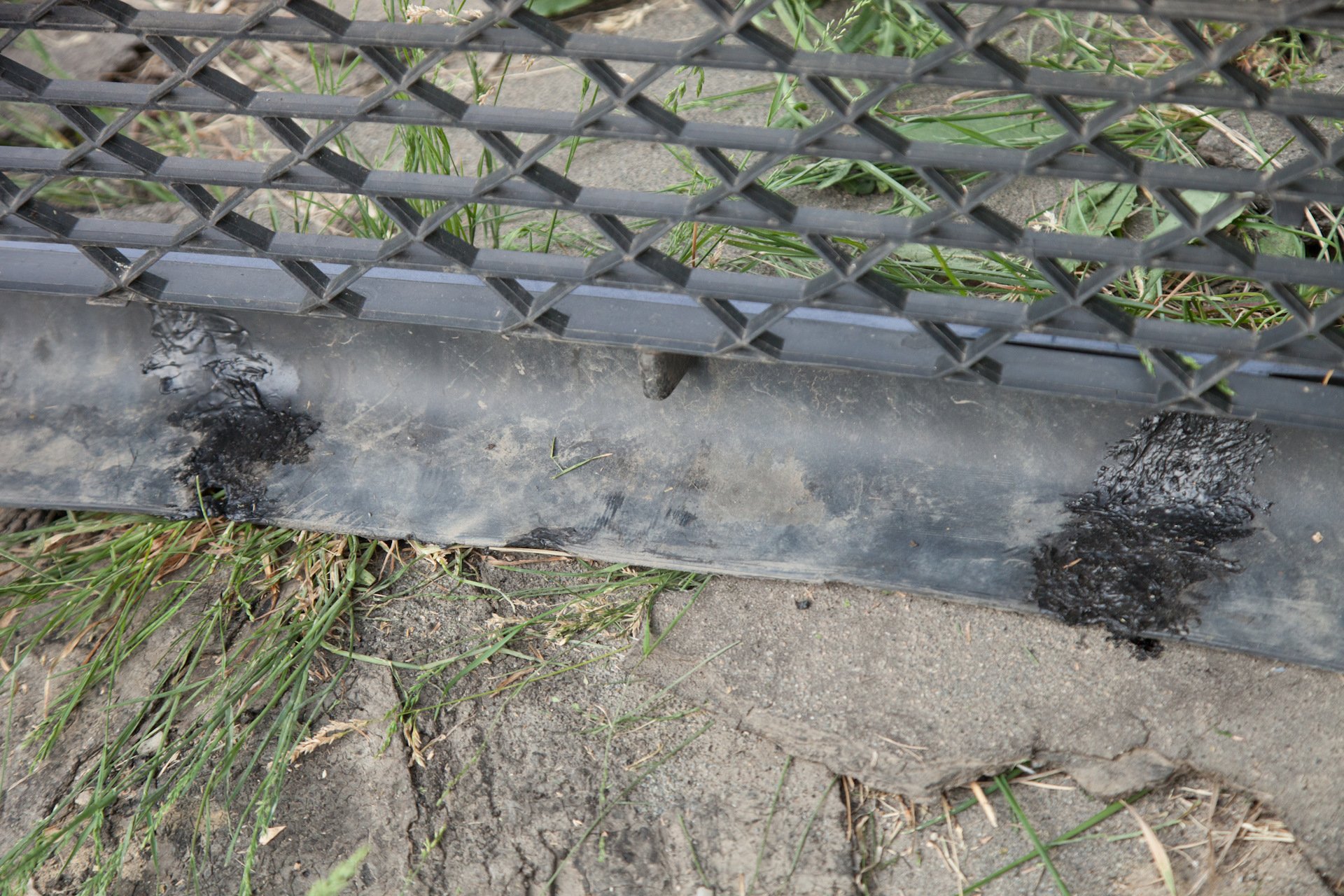 Собственно, главная цель, ради которой я его снимал. Машину купил уже со слегка растресканным бампером, зимние сугробы усугубили ситуацию, весной трещин было уже 3 штуки, но полностью он, к счастью, не разломался. Также повырывало пластик в местах нижних болтов крепления, все это я и собирался исправить.