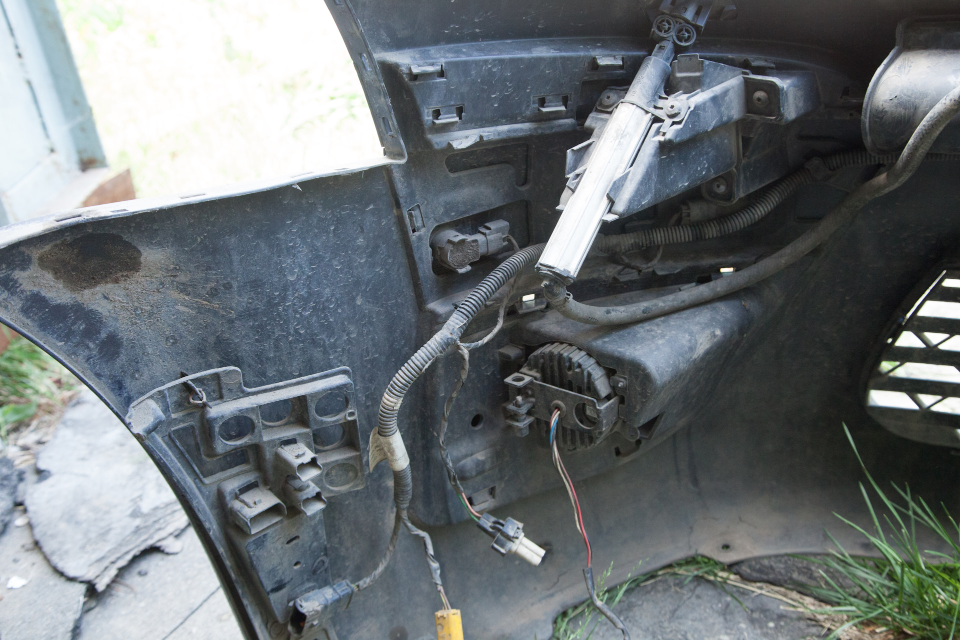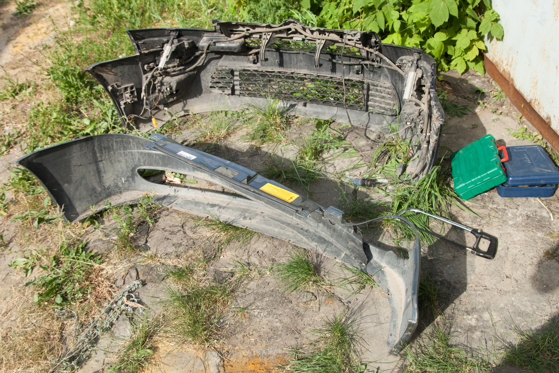 Особенно большое дело было связанно со снятием переднего бампера. Ради этого даже загнал машину к отцу в гараж (для чего пришлось подрасчистить там место от хлама. :) )