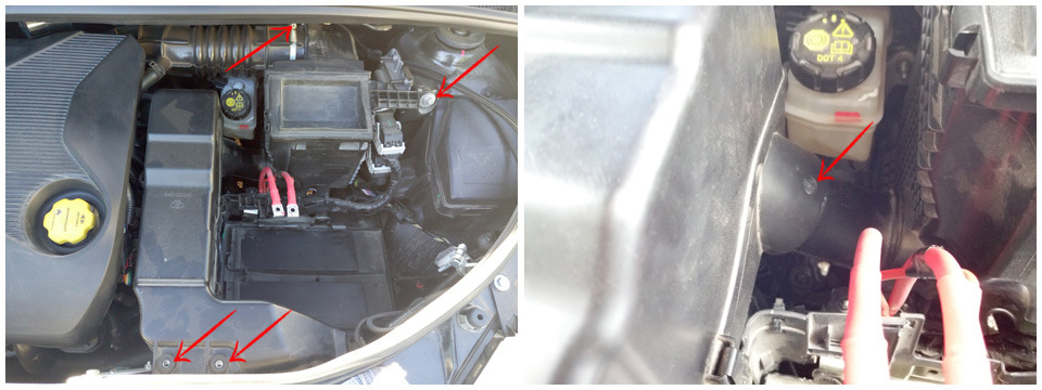 Для удобства монтажа и протяжке проводов внутрь салона, лучше снять аккумулятор и воздушный фильтр вместе с воздухозаборником.