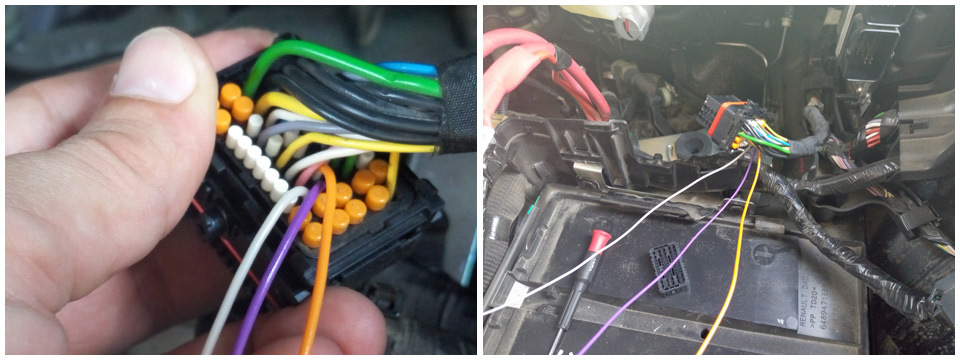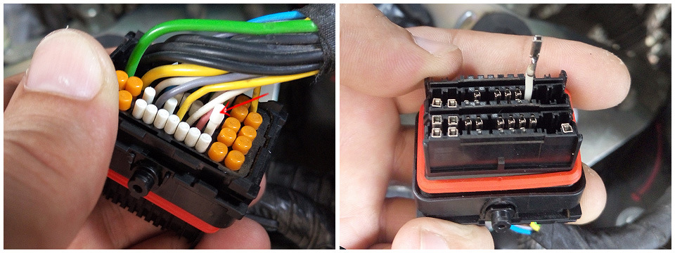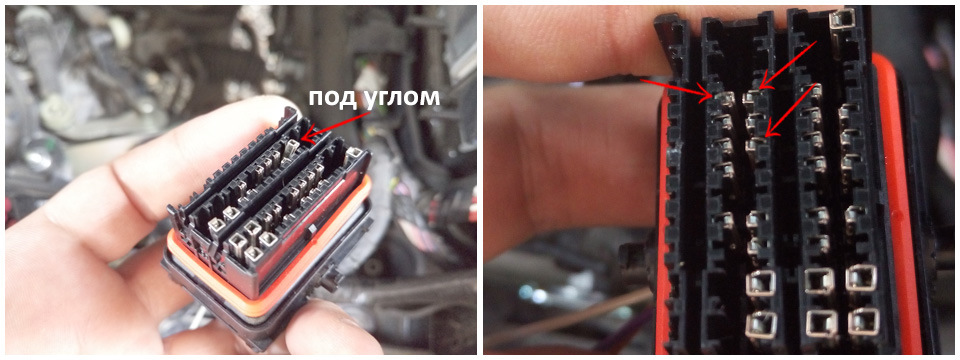 Да, можно и так, но как я не пробовал, с обратки не заходят… К тому же у нас колодка с такой длинной жгута, что ее можно изучить только поменявшись головой с двигателем.