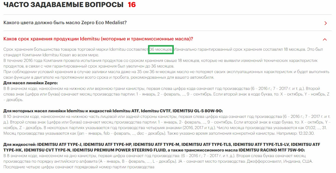 "Официально" срок хранения большинства товаров торговой марки Idemitsu составляет 36 месяцев! ;-)