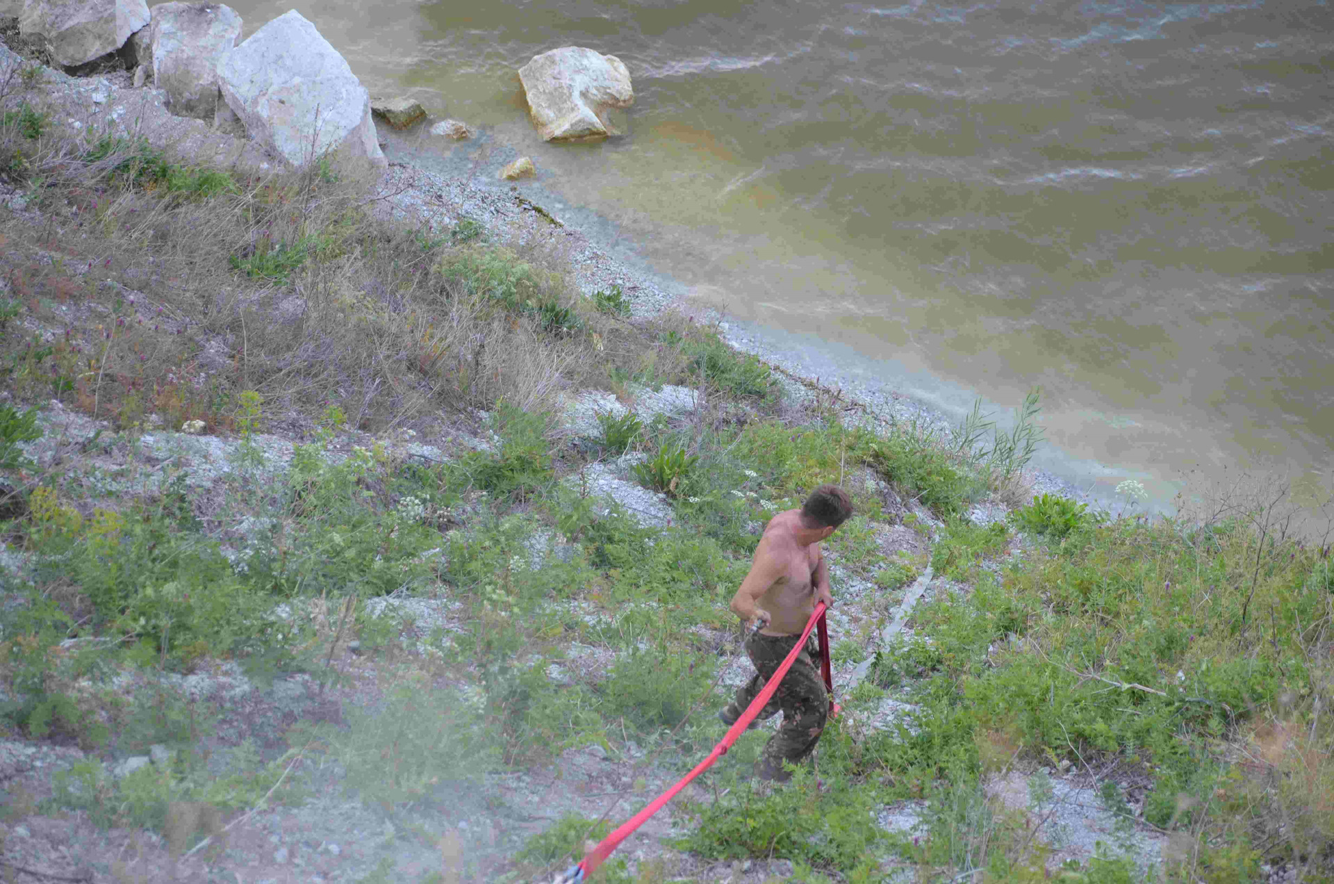 Так как идти купаться пешком лень после долгой дороги, мы достали из шмурдяка свои троса скрепили их между собой и прицепили к авто. Так мы спускались к воде и ни кто кроме нас там не плавал. Всего скрепили 5 тросов, а иногда даже лебедкой тянули)))