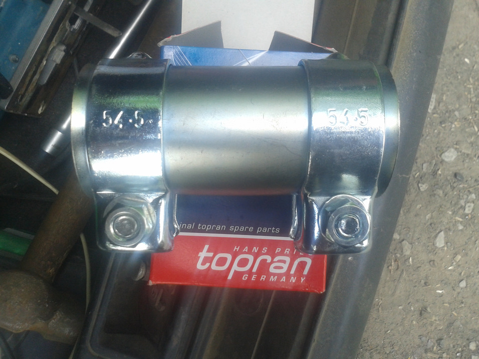 После замены сцепления образовалась проблема! Стало подсекать из под хомута, того, что соединяет глушитель с катализатором. Решил я и его поменять! Знал, что это нужно сделать, но почему-то при снятии коробки, я его не купил. Забыл.