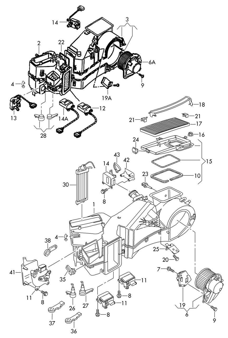 До этого машина стояла в гараже и проблем не возникало.Но я в отпуске и тачка стоит под окном, проливные дожди длились около четырех дней.В сообществе давно читал про проблему прокладок под капотом где стоят "мозги"(с водительской стороны) и корпуса салонного фильтра(с пассажирской).Уплотнитель был поврежжден и не хватало его около двух сантиметров.Номер 10 на схеме.Оригинал VAG 8D0819165B стоимость 13.5$.