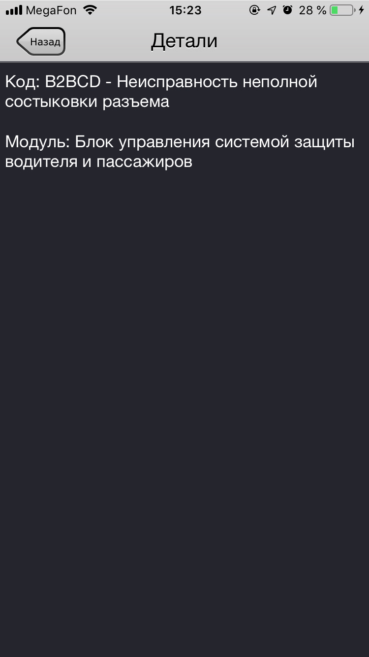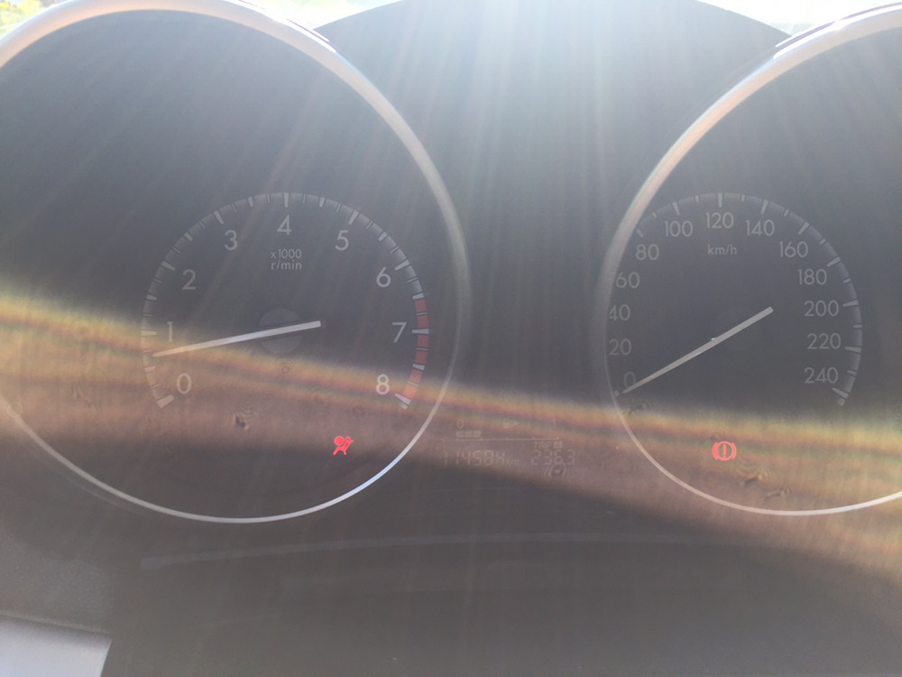 Сначала моргал, потом загорелся и больше не гас. Первым делом залез под сиденья перетыкнул колодки. Не помогло. И забил на него, примерно на пару недель. Но каждый раз садясь в машину он напоминал о себе, этот толстый мужик. Нашел дома елмку, подтыкнул и всплыла ошибка.
