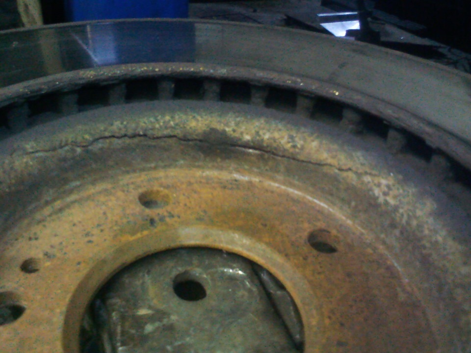 Так вот теоретически дорожка могла образоваться в результате смещения тормозного, а при подробном осмотре оказалось что диск не просто кривой, а он лопнул.
