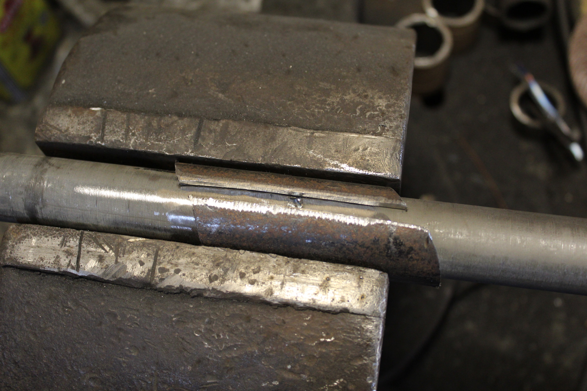 Далее из той же трубы, что делал усиление по морде сделал две втулки, выпили вдоль небольшой кусок для того, что бы крепче поджать саму втулку, и для хорошего продольного провара. Так же сами втулки сделал не прямые, а косые, что бы избежать поперечного шва, который, как мне сказал Katana1100, ослабляет конструкцию. В общем пытался учесть все нюансы и сделать нормально, ибо делаю это впервые)